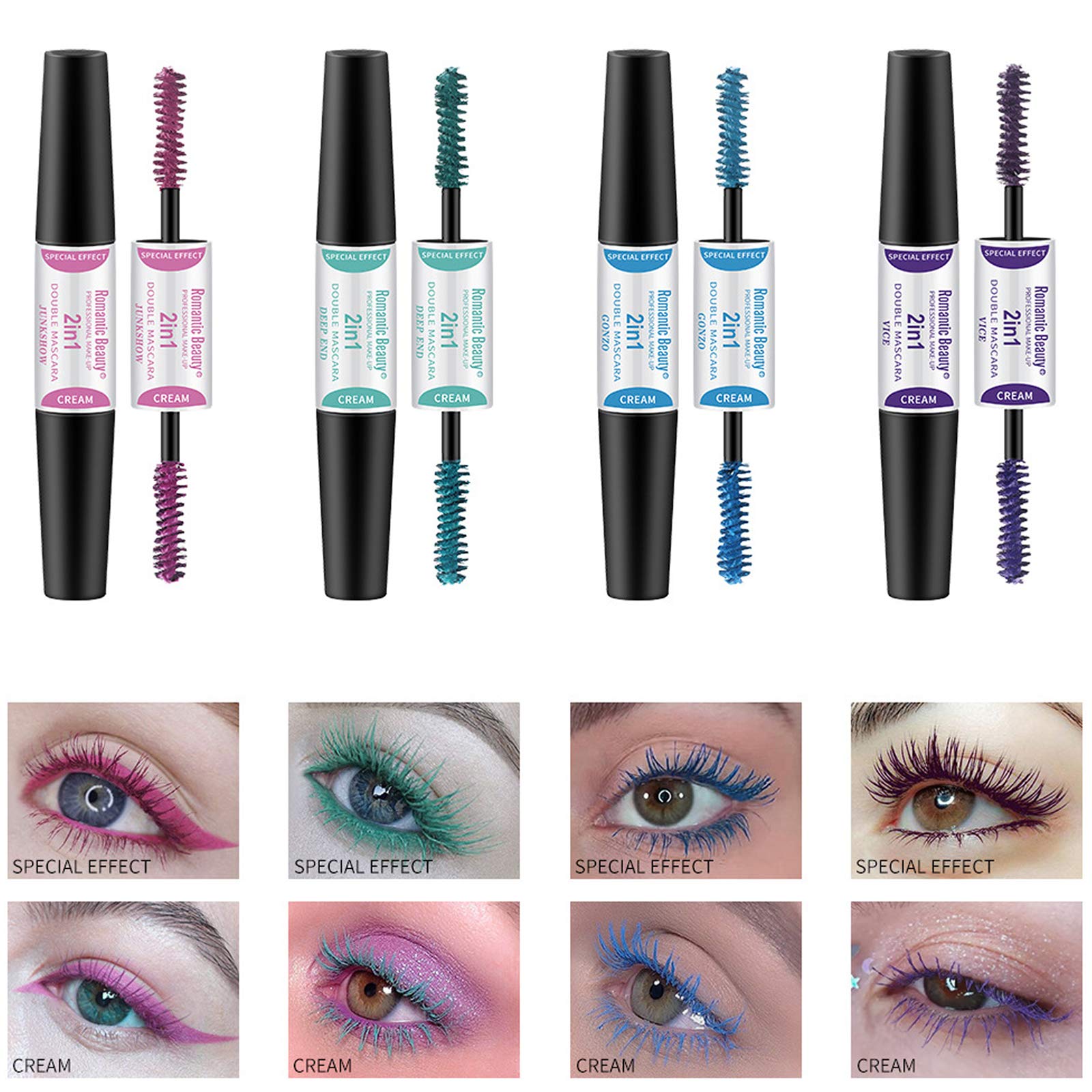 • 【2 in 1 Dual-end 8 Colors Mascara】Eyelash mascara have 8 colors:dark red, pink, dark green, light green, dark blue, light blue, dark purple and lavender.You can choose a dark or light eyelash color according to your makeup, no longer worry about only one dark or light color, boldly use your creativity