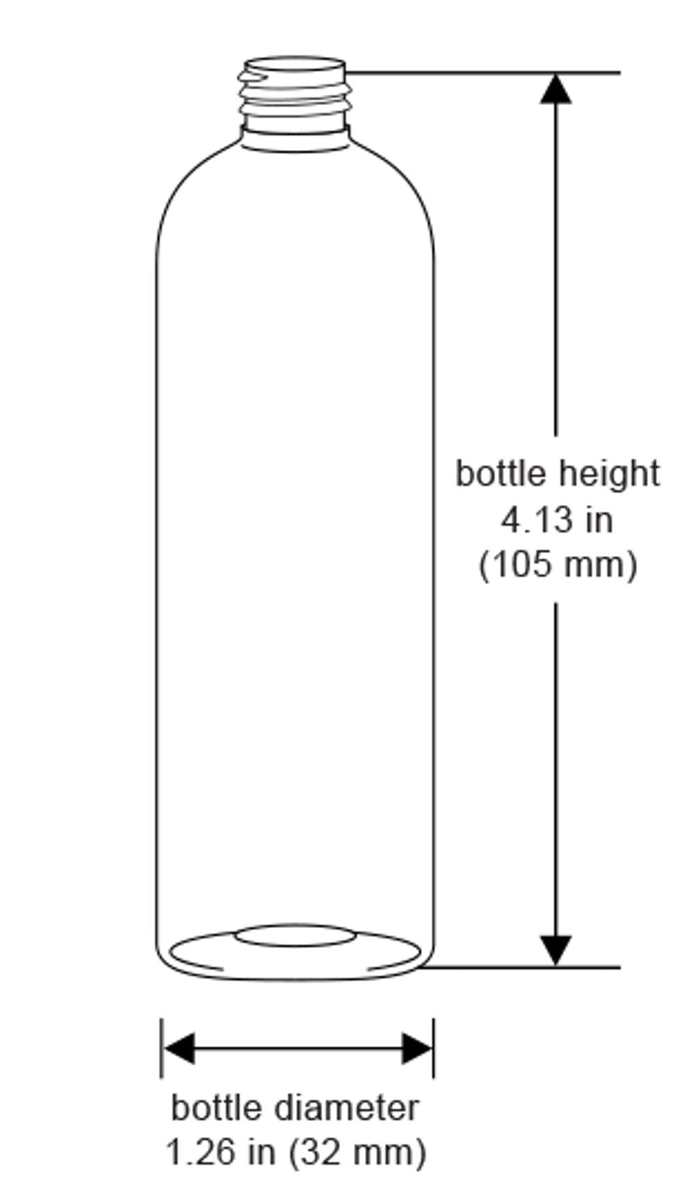 - Round Cosmo shape bottles. PET plastic is BPA-free. Lightweight, great for travel and camping.