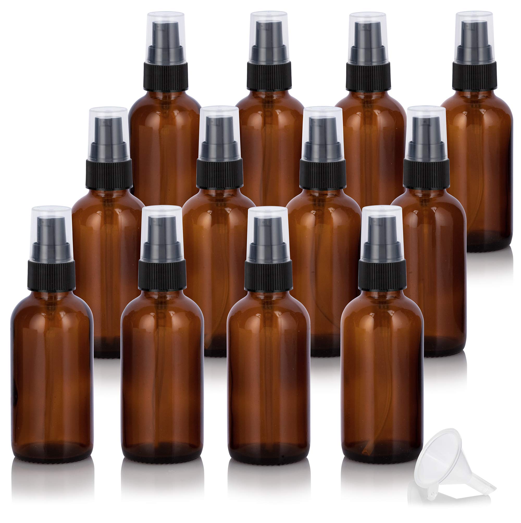 2 oz Amber Glass Boston Round Treatment Pump Bottle (12 pack) + Funnel by JUVITUS Store