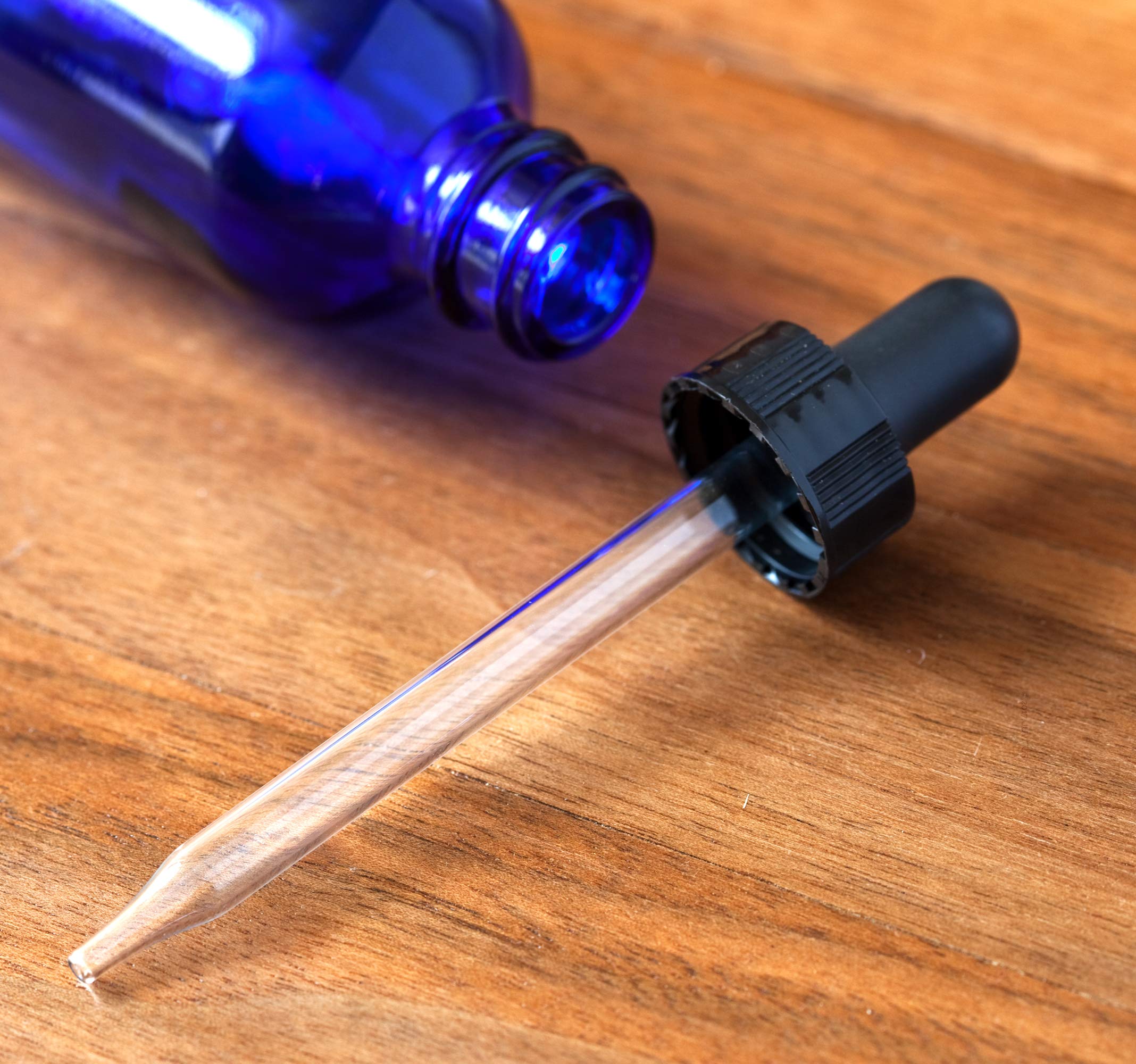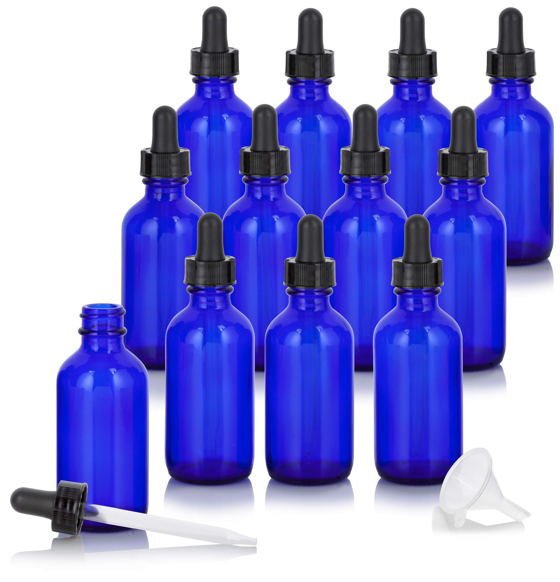 2 oz Cobalt Blue Glass Boston Round Dropper Bottle (12 Pack) + Funnel