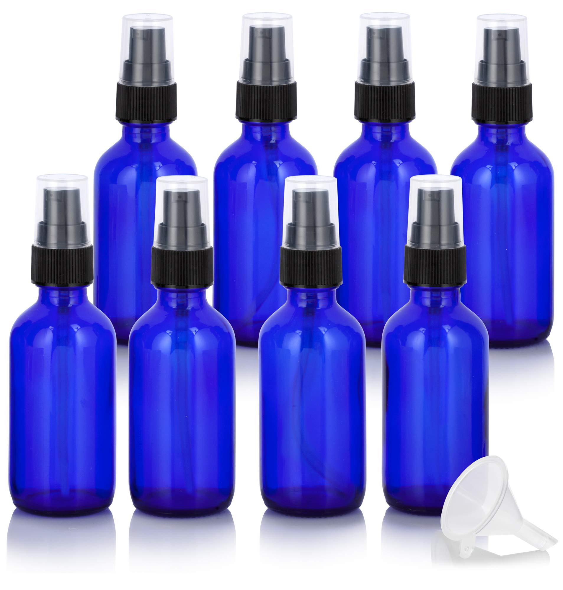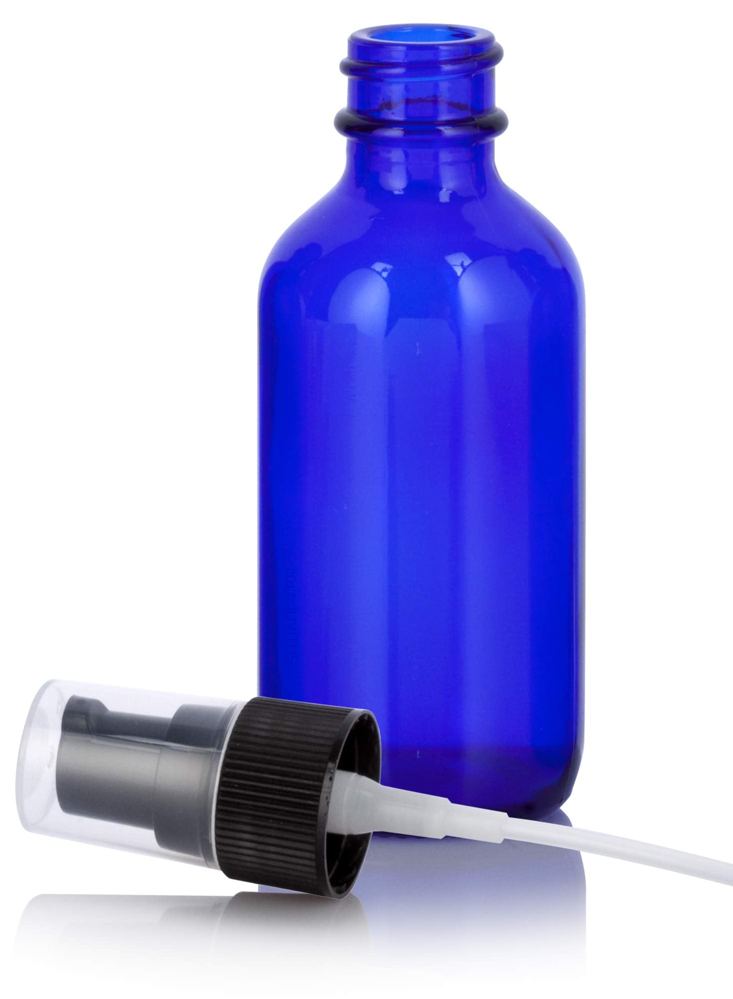 2 oz Cobalt Blue Glass Boston Round Treatment Pump Bottle (8 Pack) + Funnel