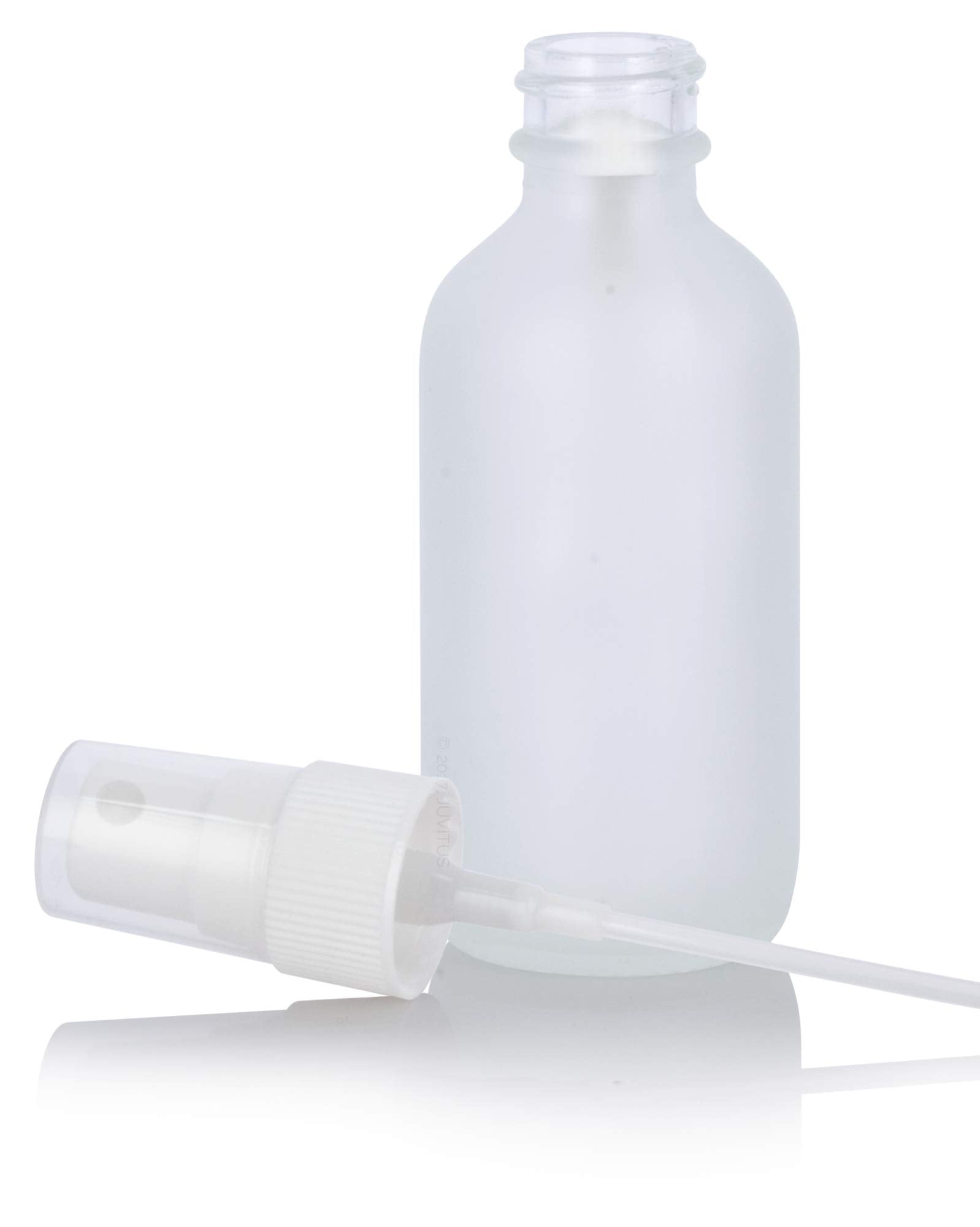 2 oz Frosted Clear Glass Boston Round White Fine Mist Spray Bottle (12 pack) + Funnel for essential oils, aromatherapy, food grade, bpa free