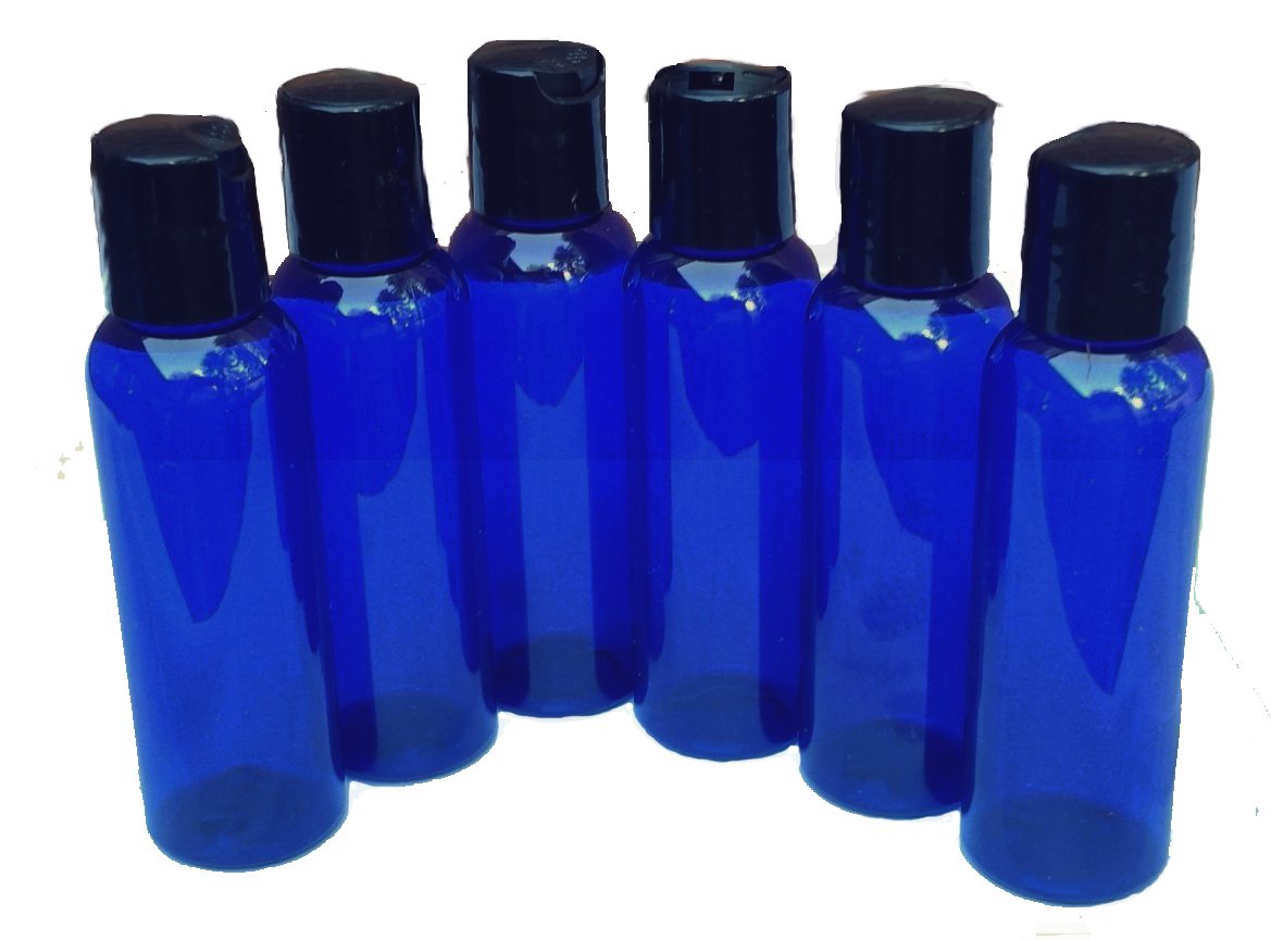 2 oz Plastic Bottles Blue Durable and Reuseable PET Plastic Qty 6 w/Smooth Black Disc Top Caps 2oz 60ml Plus Kraft Labels