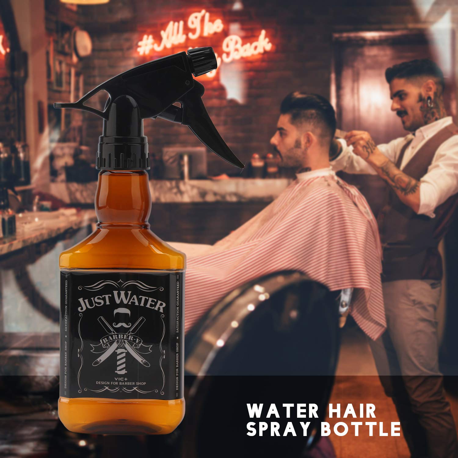 2 Pack 8.5oz&16.9oz Water Hair Spray Bottles, Segbeauty Empty Retro Barber Hair Salon Trigger Sprayer, Amber Plastic Spray Bottle with Adjustable Mist and Stream Settings for Hairstylist Hair Cutting