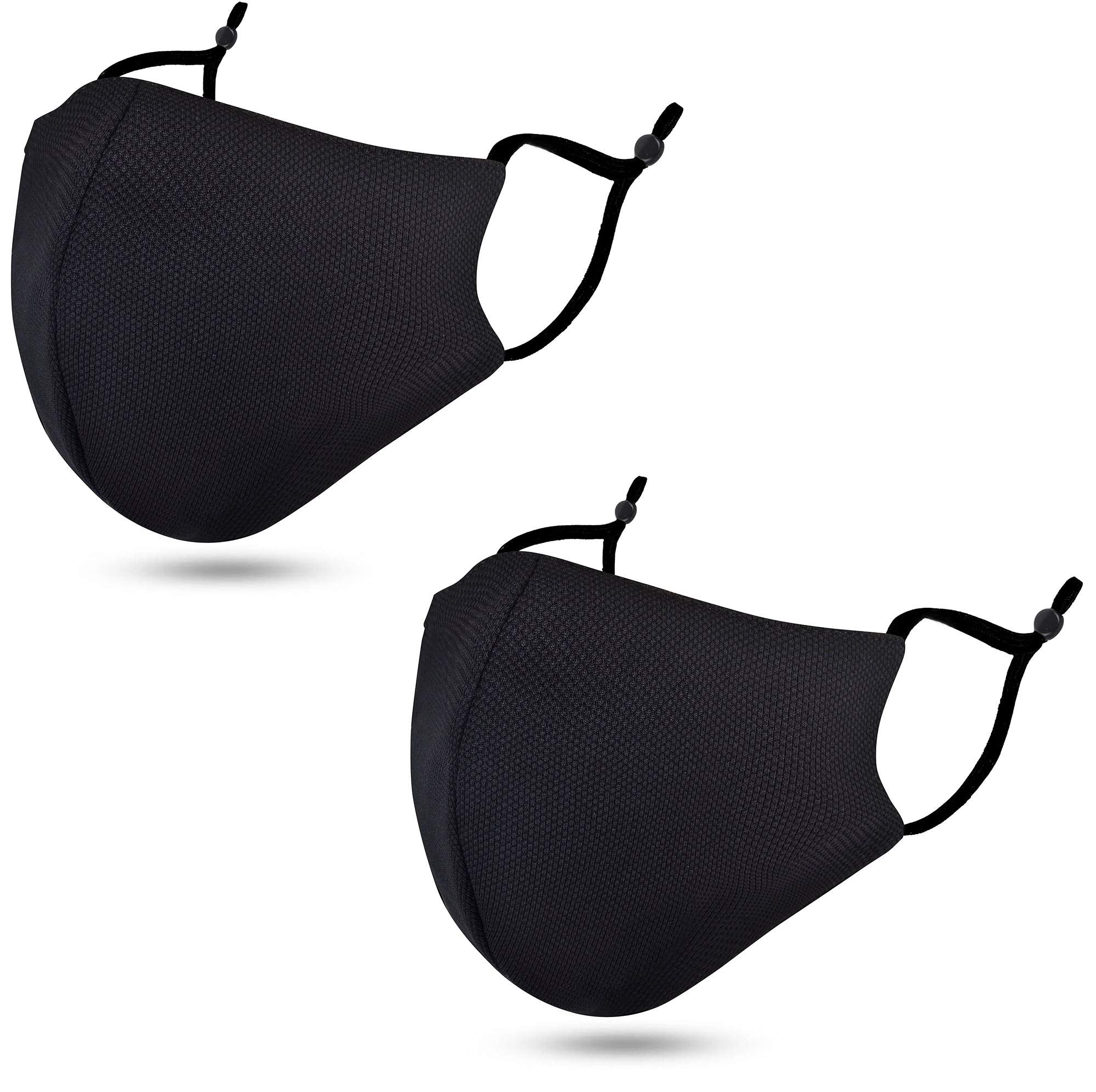 2 Pack of Reusable Face Maks for Men Women,Washable Breathable Face Bandanas with Adjustable Nose Clip and Earloop,Black