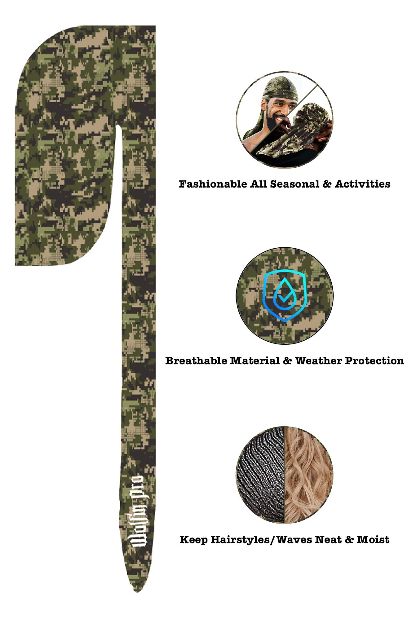 - 🔥 SAY GOODBYE TO FUSSY HAIR – Never worry about messy hair syndrome again. Our Premium Camouflage Durag remove any flakiness that plagues the unkempt wave in as little as a week of usage. Be prepared to look sexy and receive compliments.