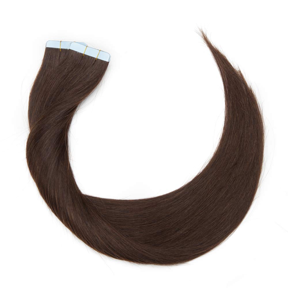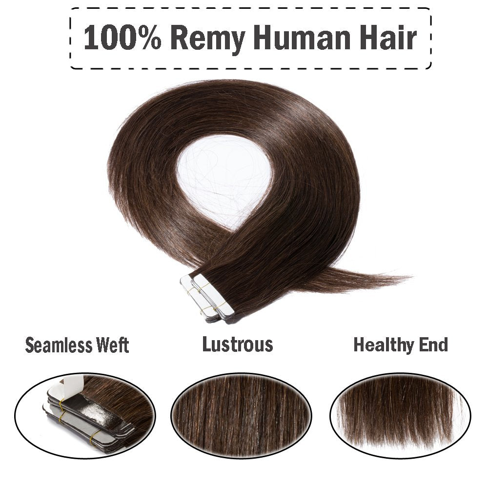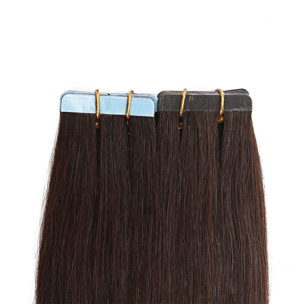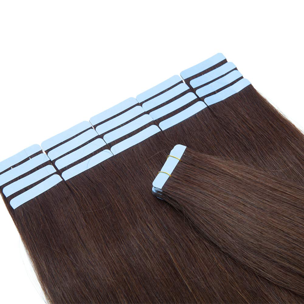 20" 100g Tape in Hair Extensions Remy Human Hair 40pcs #2 Dark Brown Straight Hair Seamless Skin Weft Glue in Hairpieces with Invisible Double Sided Tapes by Hairro Store