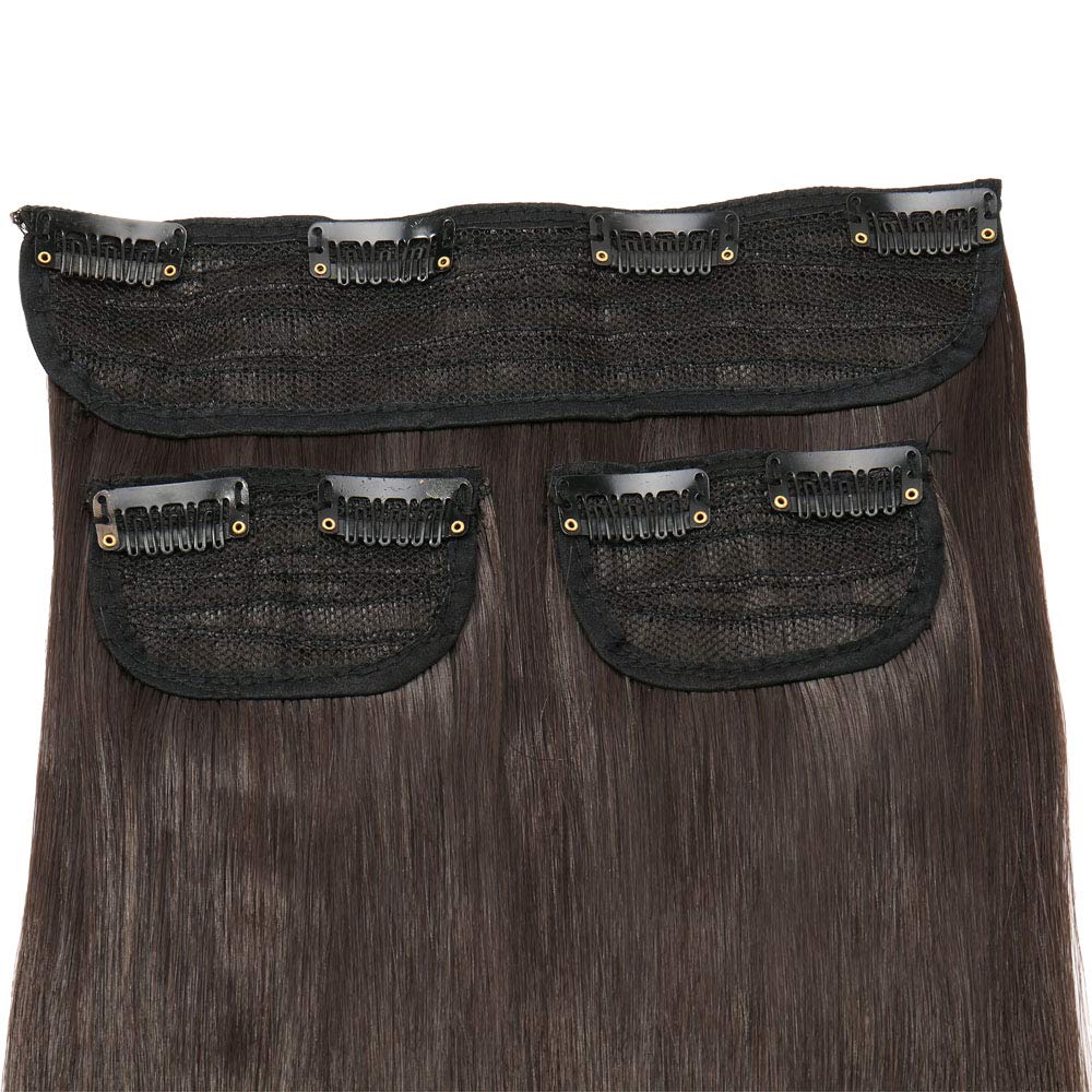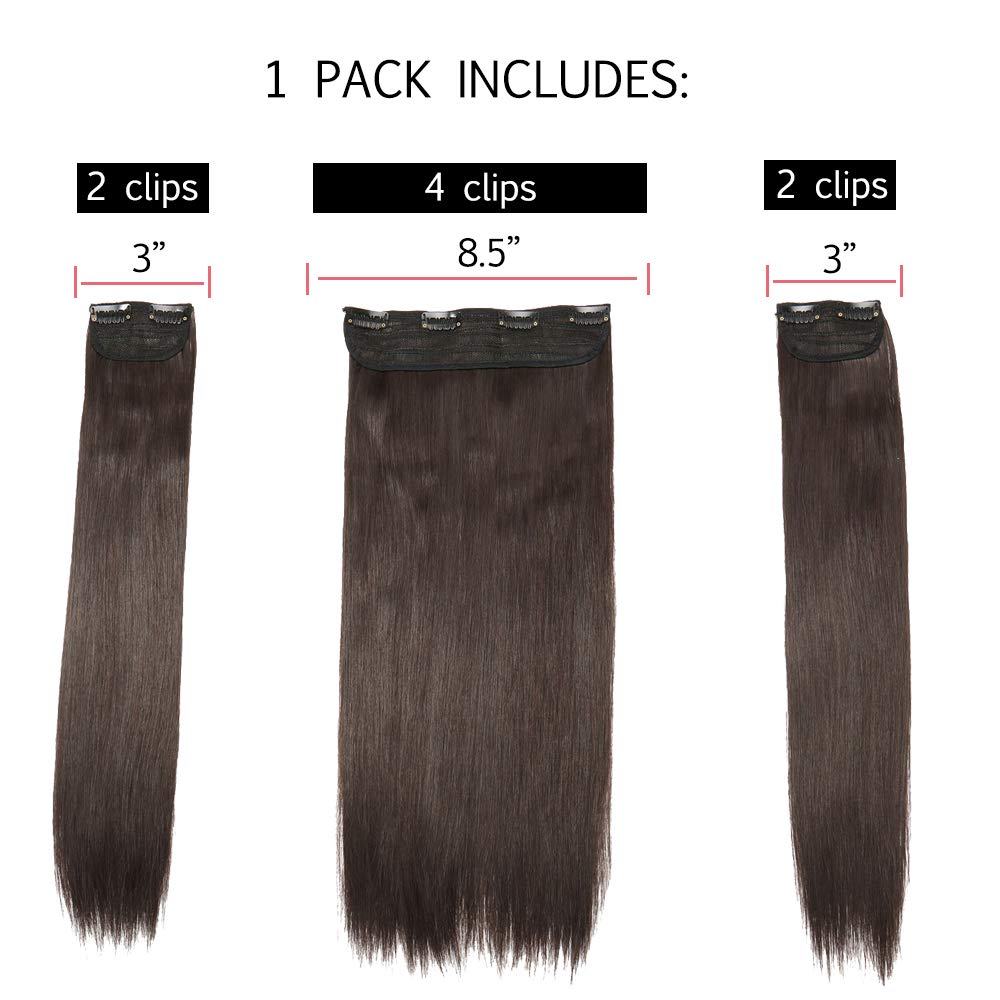 20” Long Clip In On Hair Extension 3 Pcs 8 Clips 3/4 Full Head Real Thick Hairpiece Clip In Curly Straight Synthetic Heat Resistant Hair 190g(20"straight,dark brown)