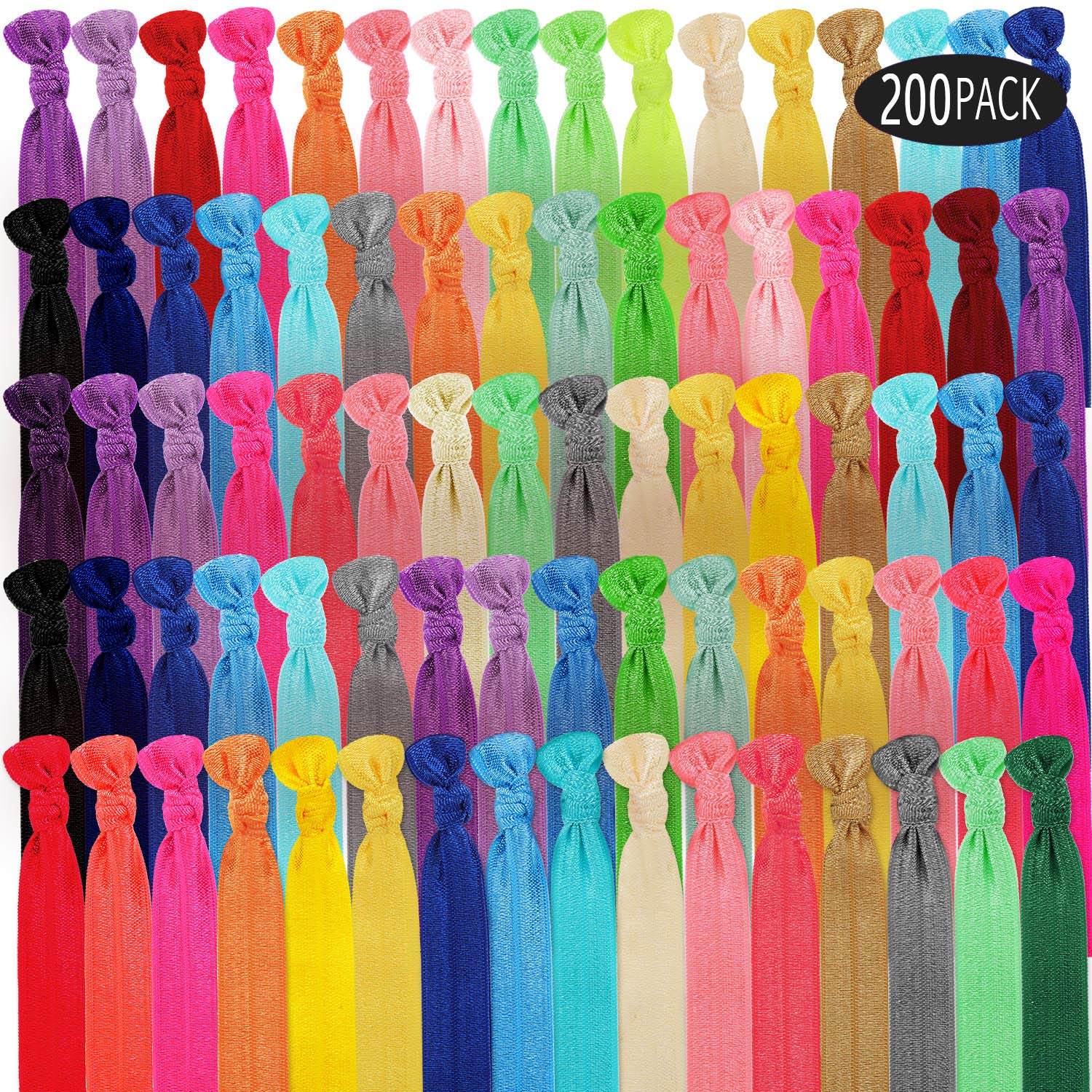 200 Pieces Elastic Knotted Hair Ties Colorful Ribbon Hair Bands No Crease Ponytail Holders Multicolor Fold Over Hair Accessories for Women Girls