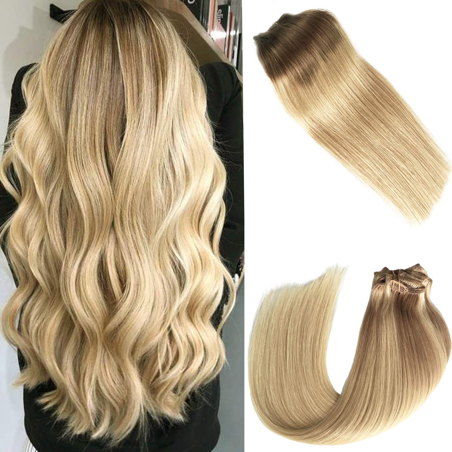 22 Inch Hair Extension Brown to Blonde Clip in Human Hair Extensions 120g 7pcs Thicken Double Weft Full Head Straight Ombre Balayage Clip on Real Remy Extensions by Valiilo Store