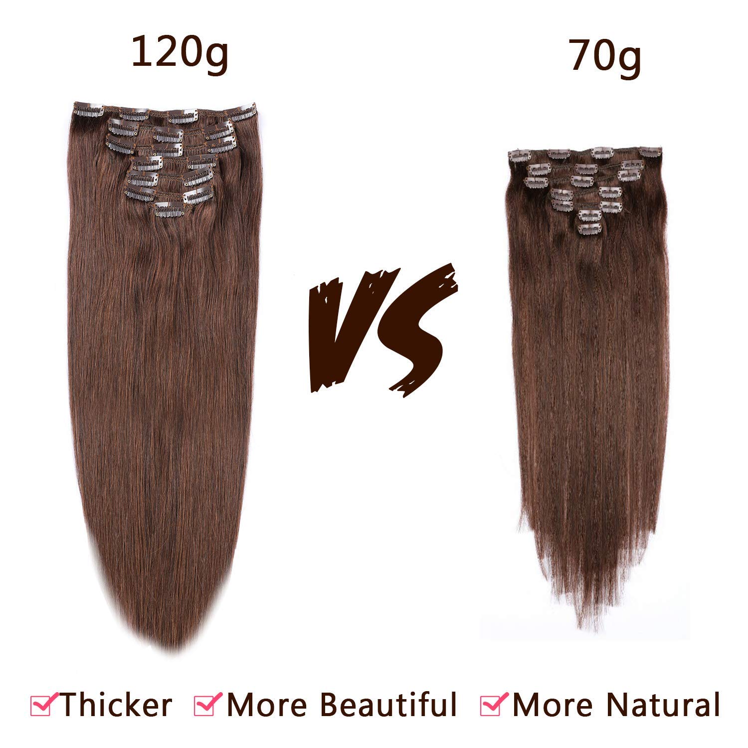 - 【Clip in Extensions Specification & Secure】7pcs 120g clip in hair extensions human hair for thick hair,double weft human hair with clip in,easily blend with your hair, 2 sets for thin hair with 17clips.The clips is sesure enough for your hair.will help you to Get a gorgeous full & long hair look and very easy to apply those hair clips.
