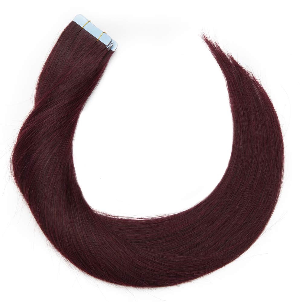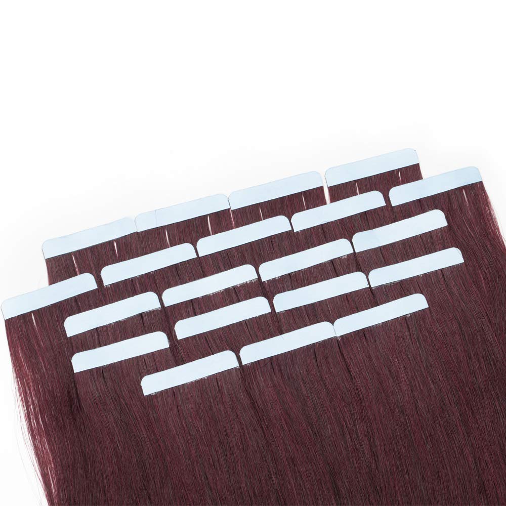 22 Inch Remy Tape in Human Hair Extensions 20pcs 50g #99J Wine Red Straight Hair Seamless Skin Weft Glue in Hairpieces with Invisible Double Sided Tape by Hairro Store