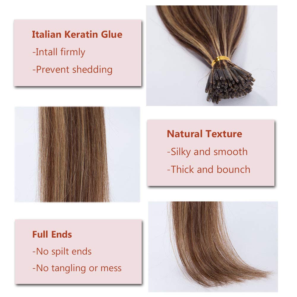 - ❤ I tip hair extensions is a perfect choice for people who is looking for long-term extensions,can match your hair very natural.100 strands/pack, 0.5g/ strands.We recommend 3-4 packs (150-200g) for adding volume and stretching length.
