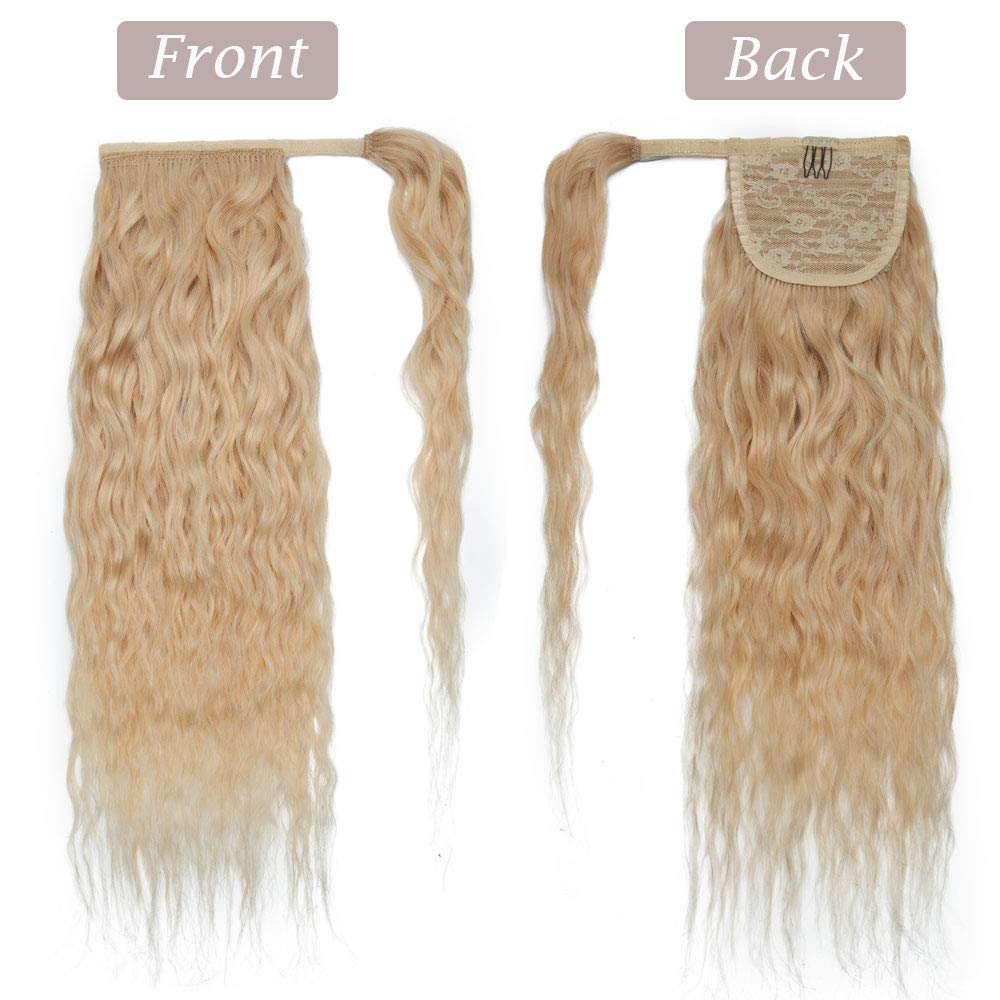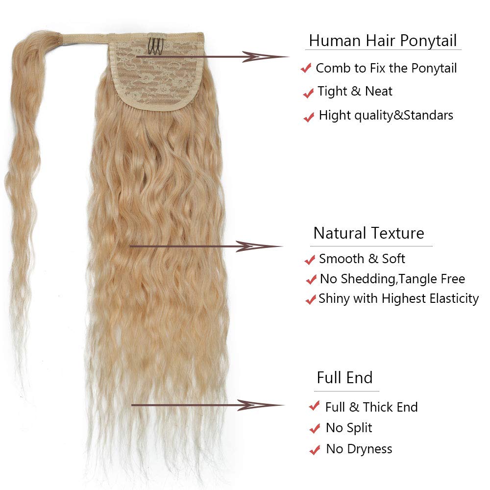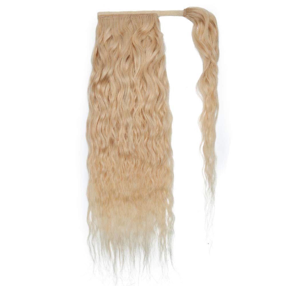 22 Inches Wrap Around Human Hair Ponytail Extensions 100% Remy Human Hair Long Corn Wave Curly With Comb Clip in One Piece Pony Tail Extensions For Girl Lady Women #613 Bleach Blonde 22'' 95g