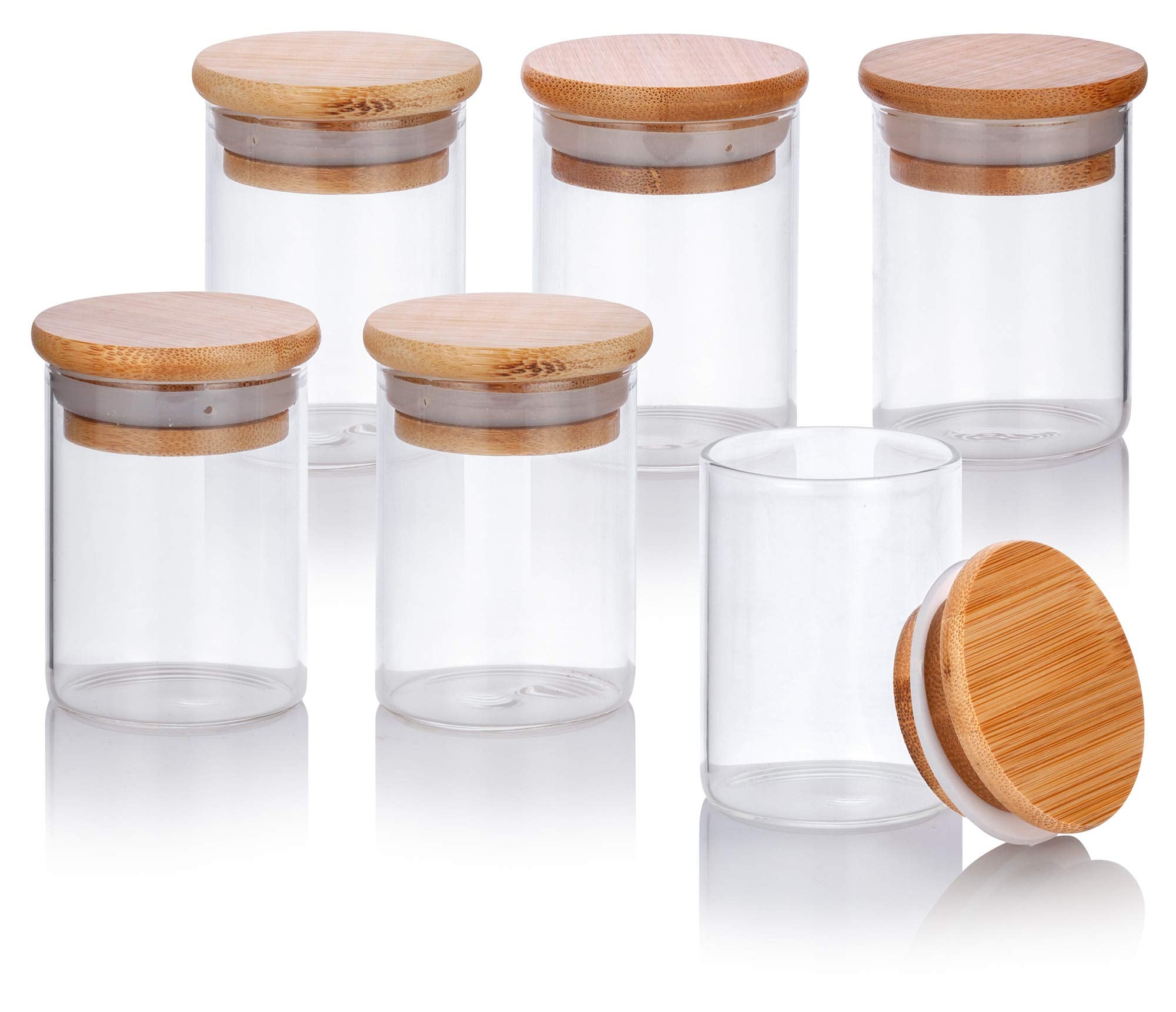 2.3 oz Premium Borosilicate Clear Glass Jars with Bamboo Silicone Sealed Lid (6 Pack) by JUVITUS Store
