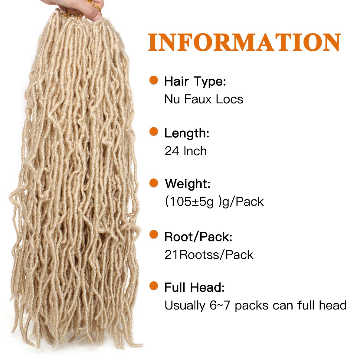24 Inch 6 Packs Blonde Nu Faux Locs Crochet Braids Hair 21 Strands Synthetic Hair Pre-Looped Crochet Braids Knotless Style Most Natural African Roots Soft Locs Hair Extensions (24 Inch, 613#)