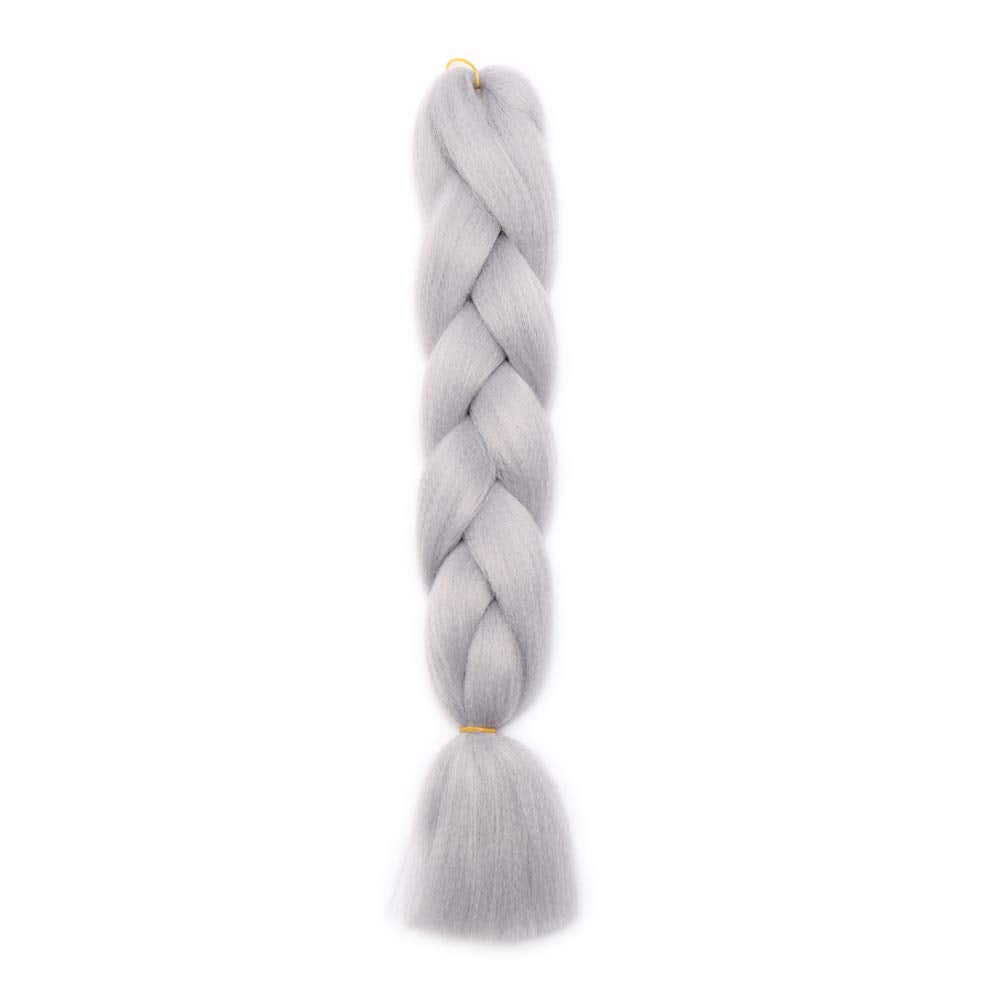 24 inch Jumbo Braiding Hair Jumbo Braid Hair Extensions Jumbo Box Braids Crochet Hair Long Rainbow Colorful for Women Kids DIY High Temperature Synthetic Fiber Silver Grey 5 Bunldes by Benehair Store