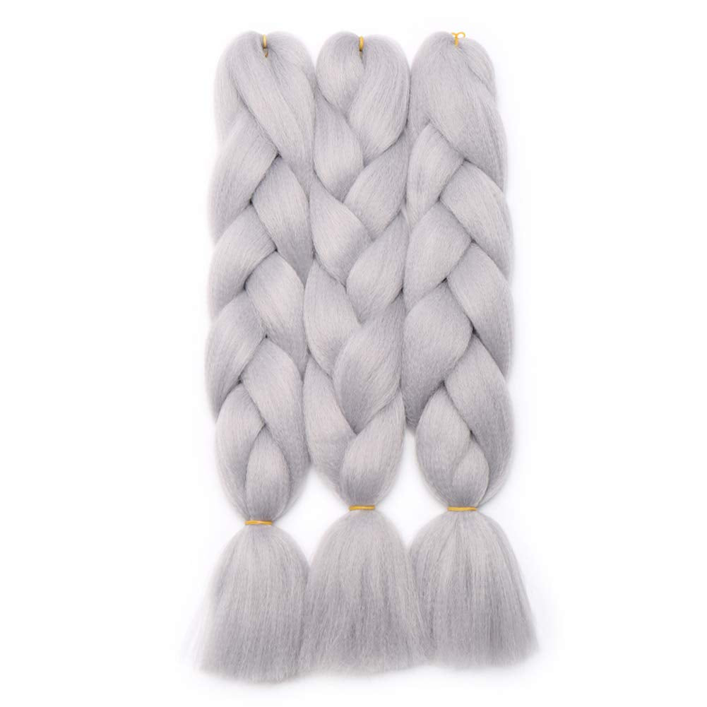 24 inch Jumbo Braiding Hair Jumbo Braid Hair Extensions Jumbo Box Braids Crochet Hair Long Rainbow Colorful for Women Kids DIY High Temperature Synthetic Fiber Silver Grey 5 Bunldes