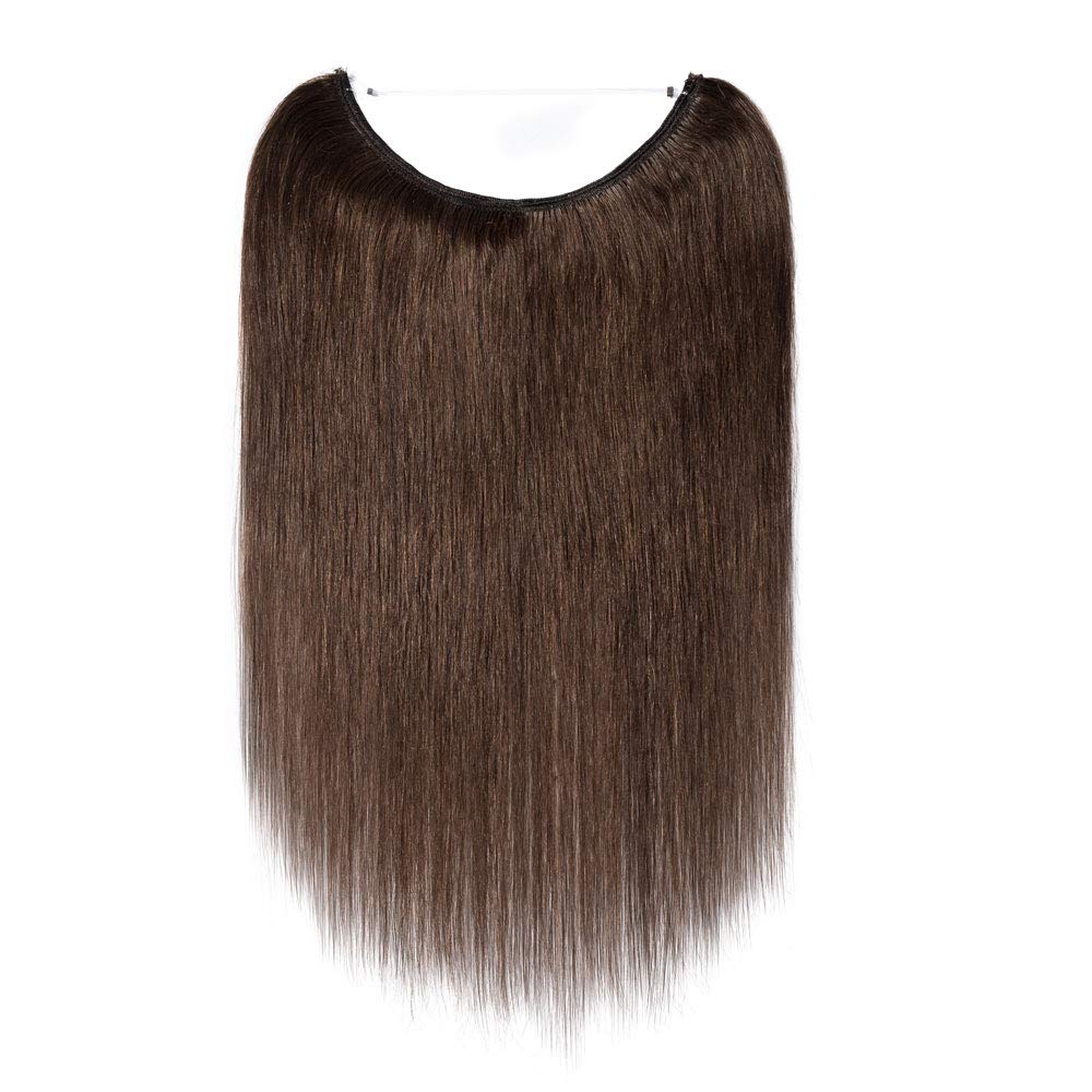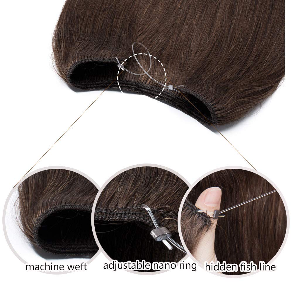 24 Inches Hidden Crown Human Hair Extensions One piece Secret Fish Line Wire In Hairpiece With Transparent Invisible Rubber Band Long Straight No Clips No Glue For Women #4 Medium Brown 80g