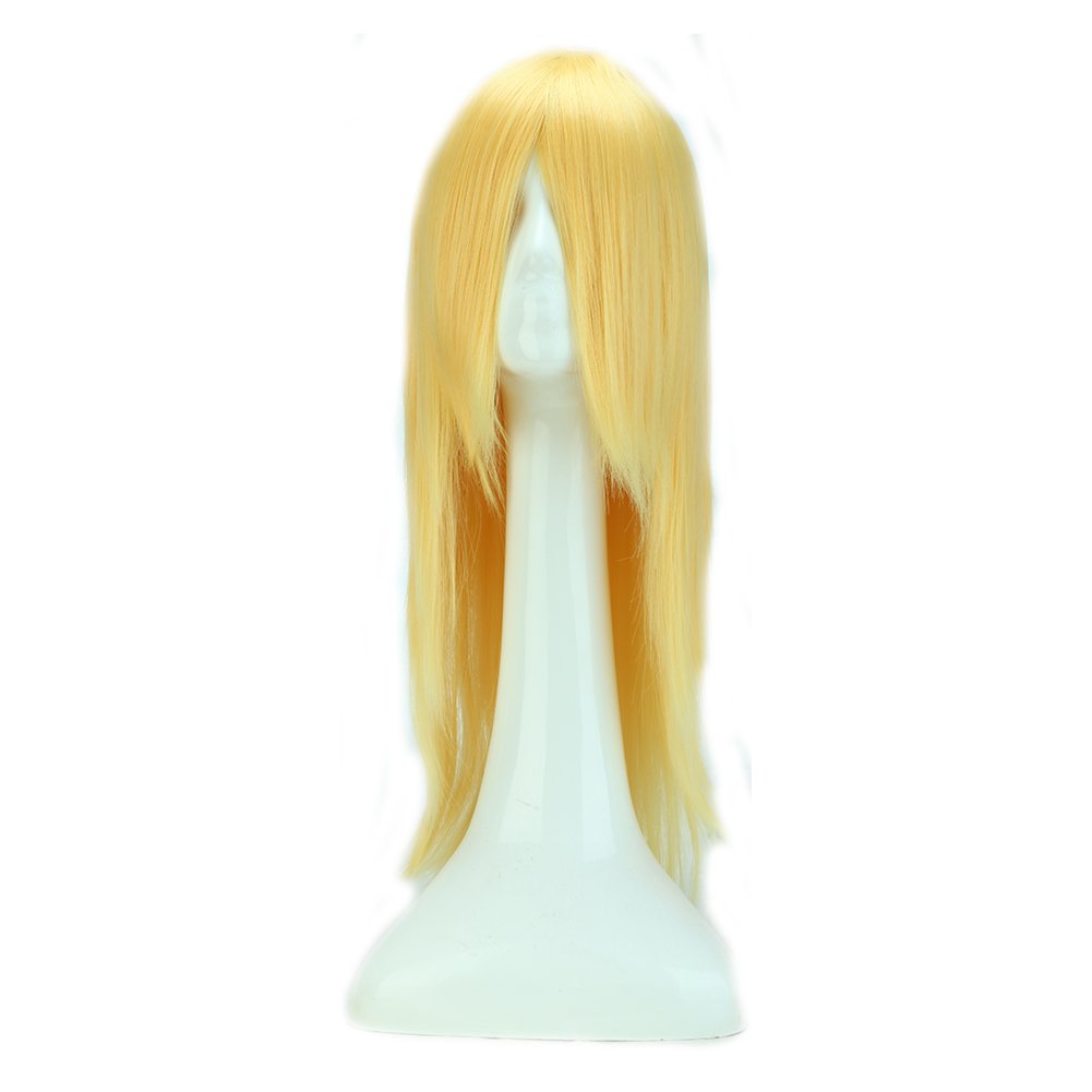 24'' Long Straight Wig Costume Anime Cosplay Wig Straight Bangs Synthetic Wigs (Golden Blonde) for Women With Wig Cap