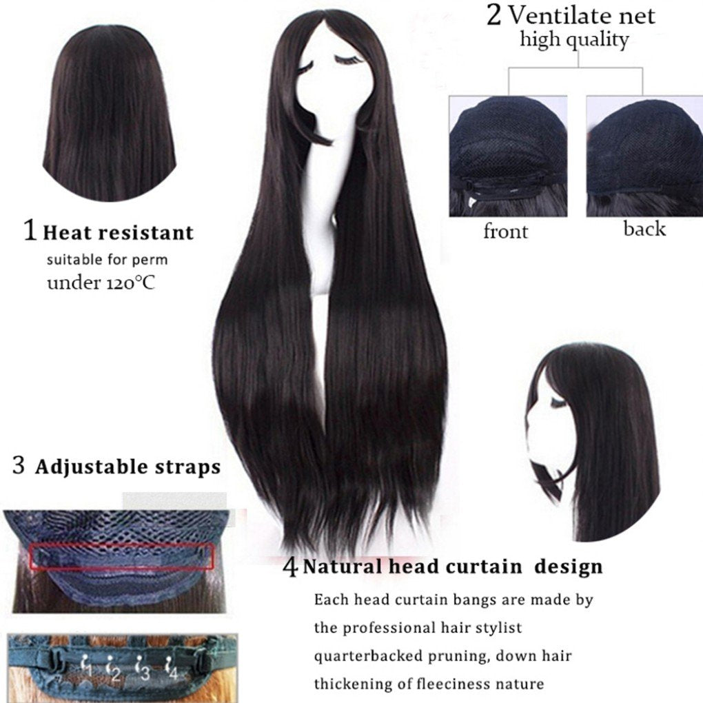 - Superior Material - The long straight bangs wig, made of heat resistant synthetic fiber hair, looks natural, pretty, real and feminine. Also works well under 140 degree.