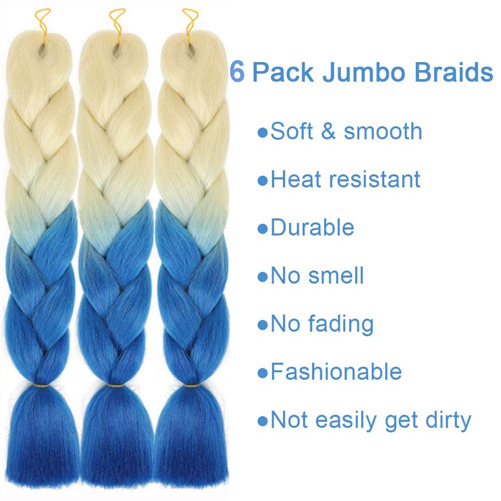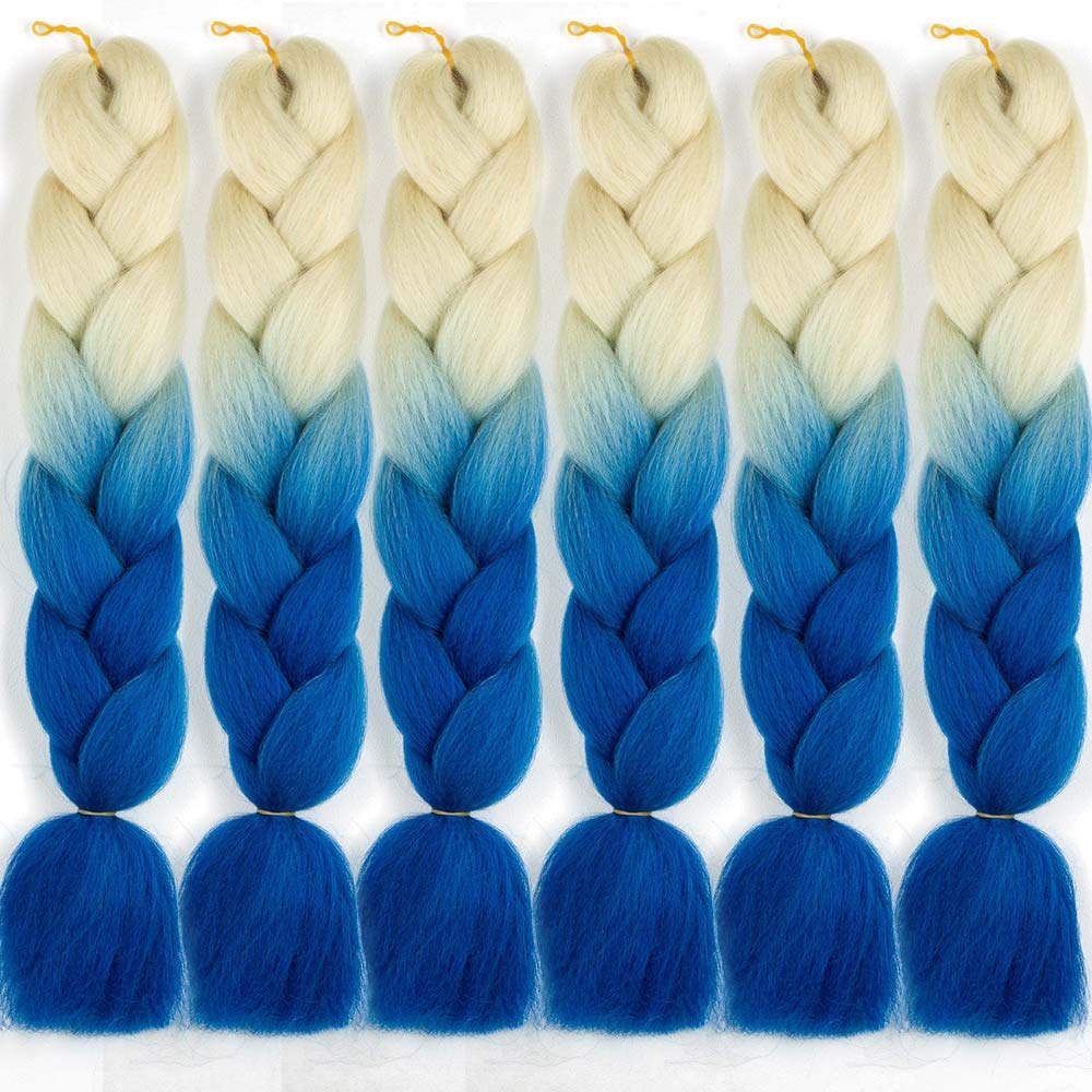 24“ New Fashion Braiding Hair Ombre Jumbo Braiding Hair Extension Jumbo Braids for Box Braids Twist Crochet Hair (Jumbo Braiding-6PCS, Blonde to Blue)