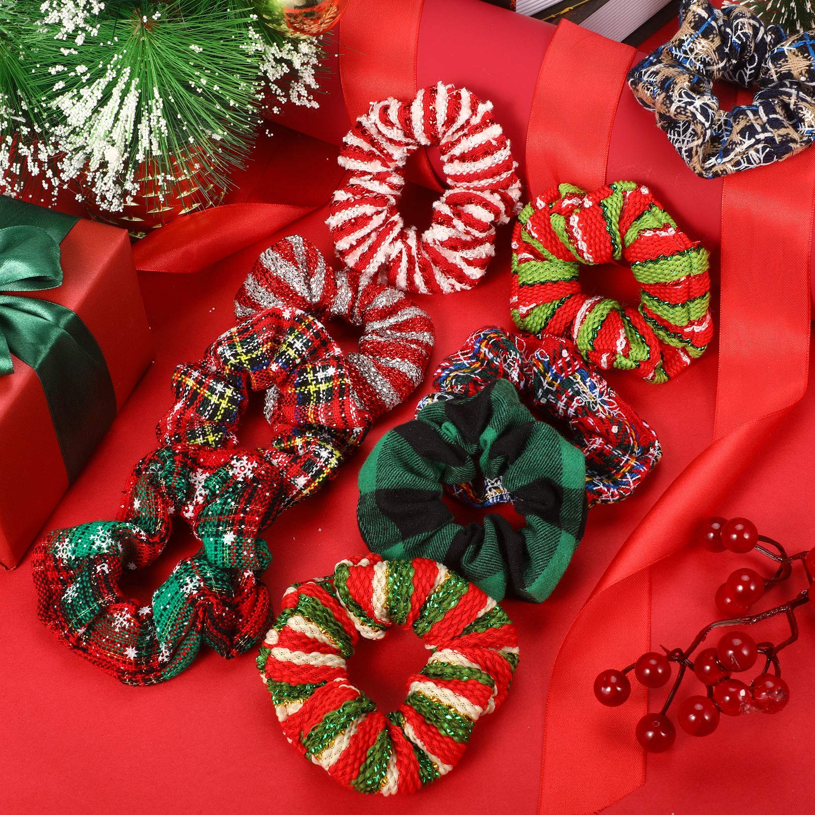 Christmas scrunchies: you will receive 24 pieces Christmas hair scrunchies, 24 styles of elastic hair bands in total, each one is different from others, enough for your daily and party use, and you can also share with your family and friends Stretchy material: these Christmas beautiful scrunchies are made of...