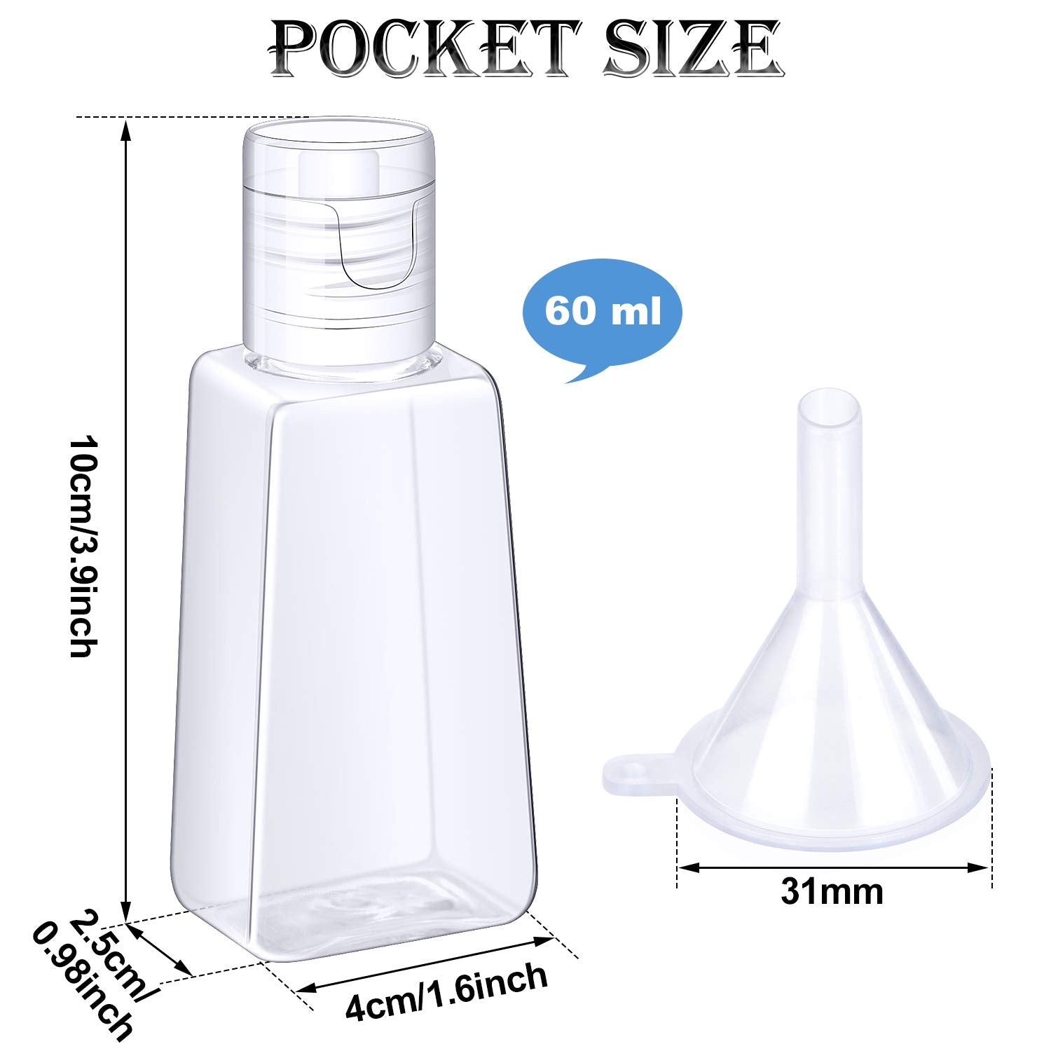 - Durable and safe material: the travel size containers and functional funnels are made of quality PET plastic material, which is safe and reliable to hold toiletries, won't leak or break; Flip cap makes it easy to dispense, convenient to open and close
