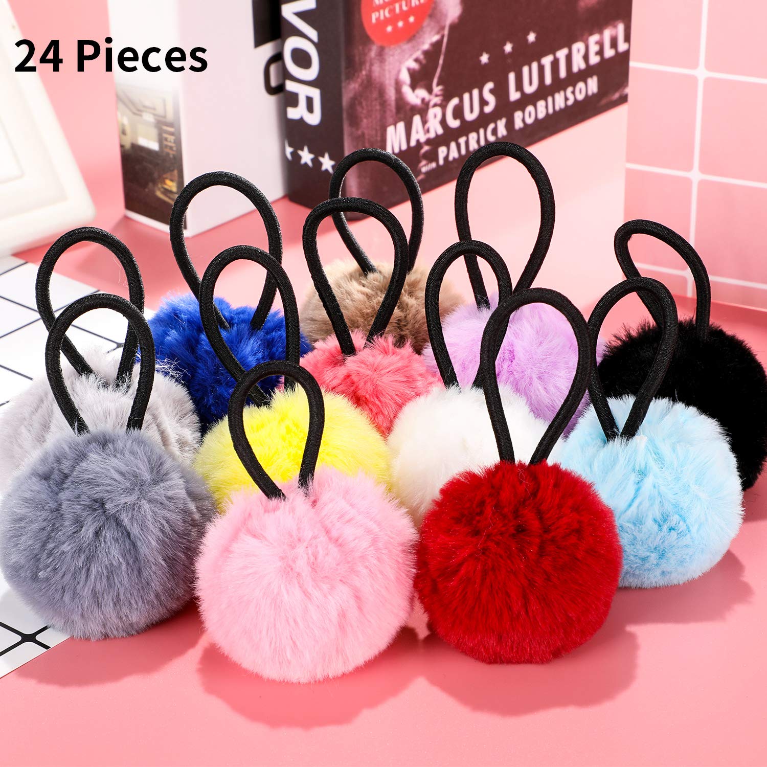 24 Pieces Pom Ball Elastic Hair Ties Cute Pompom Hair Bands pom pom hair tie Colorful Ponytail Holders for Girl Women
