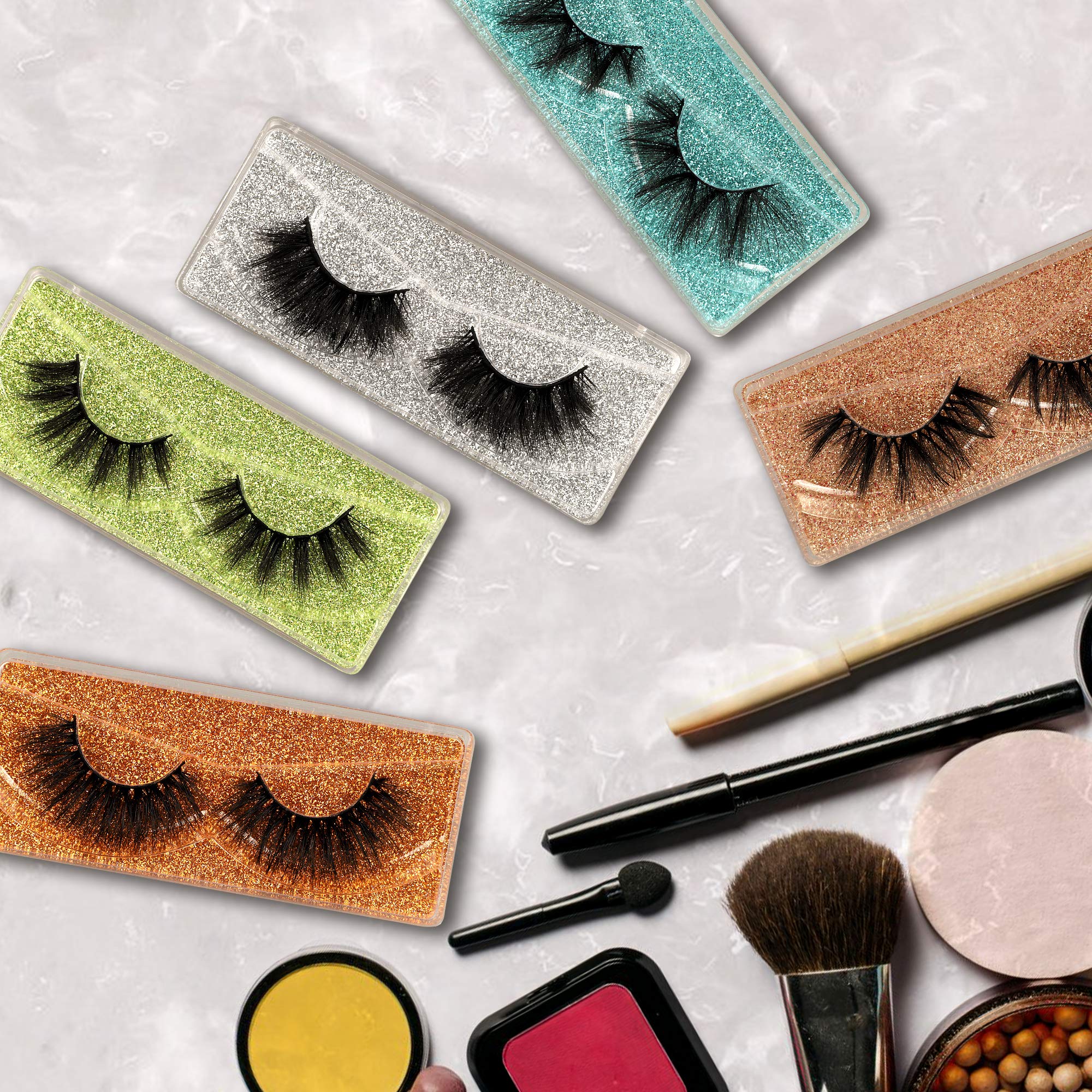 25 Pairs False Eyelashes Wholesale 20MM Faux Mink Lashes 5 Styles Mixed Dramatic Fake Eyelashes Bulk with 25 Glitter Eyelash Boxes