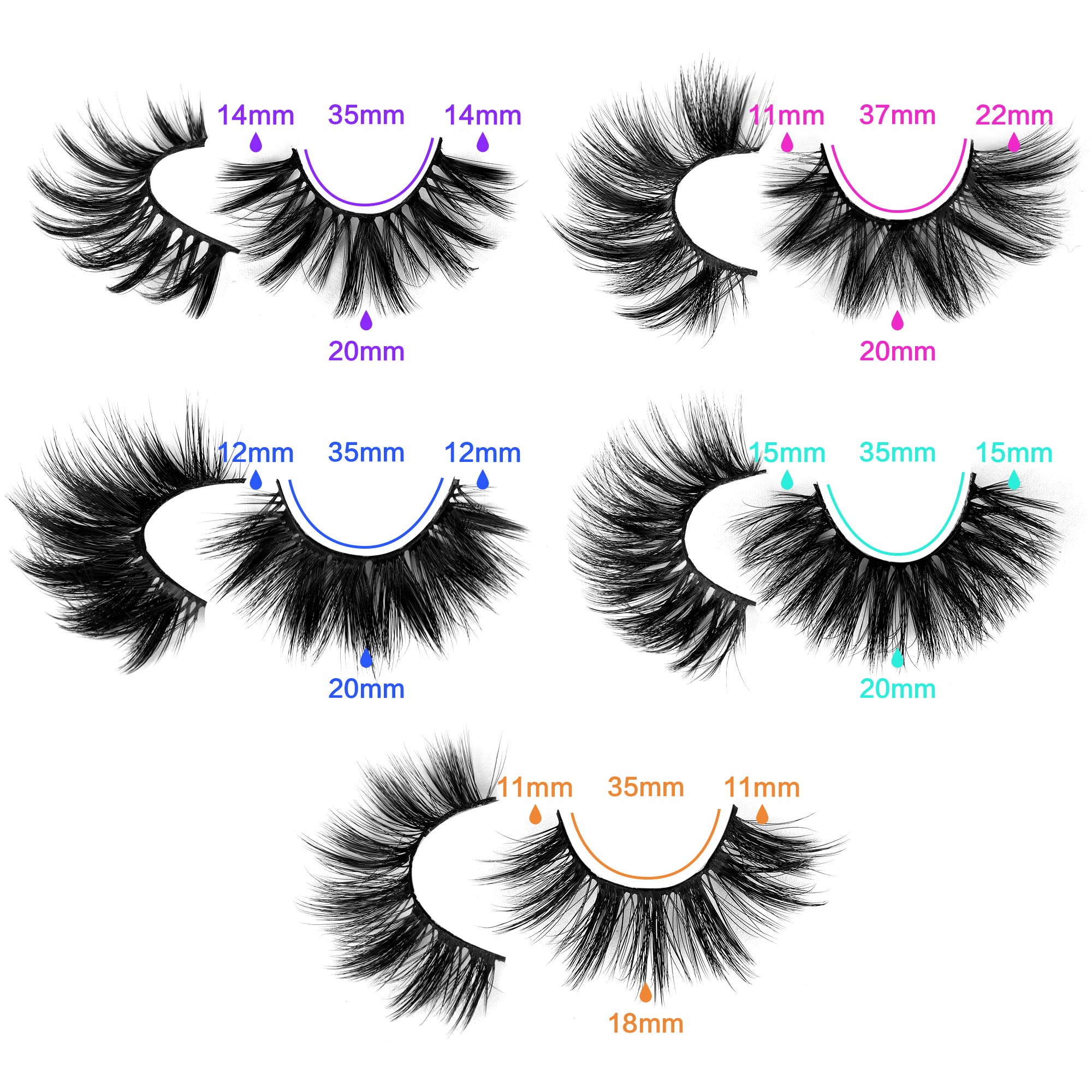 • 5 DIFFERENT STYLES of false eyelashes in pack from typical round to cat-eye shape to meet your various needs, soft, lightweight and smooth.