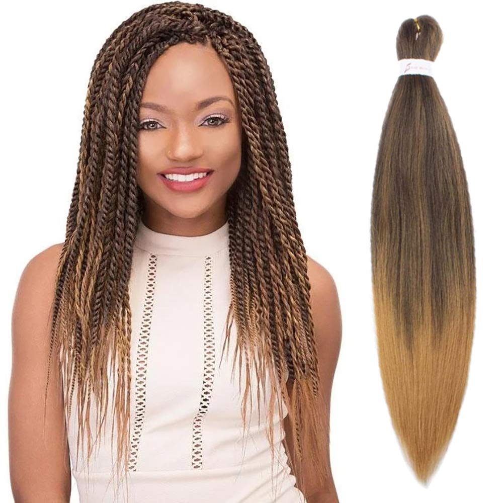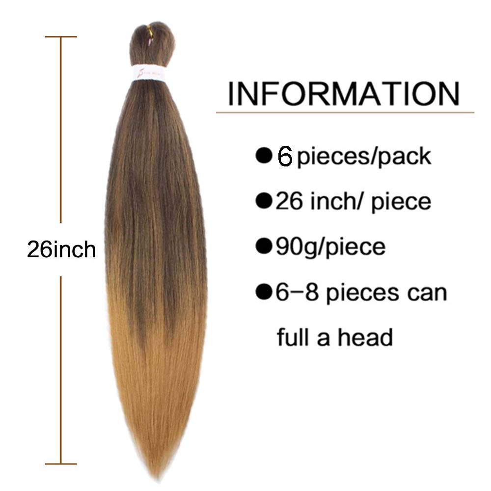 26“ Xpression Pre-stretched Braiding Hair Easy Braid Yaki Soft Synthetic Hair Extensions for Box Braids Twist Crochet Hair (EZ Braiding-6PCS, T4/27#)