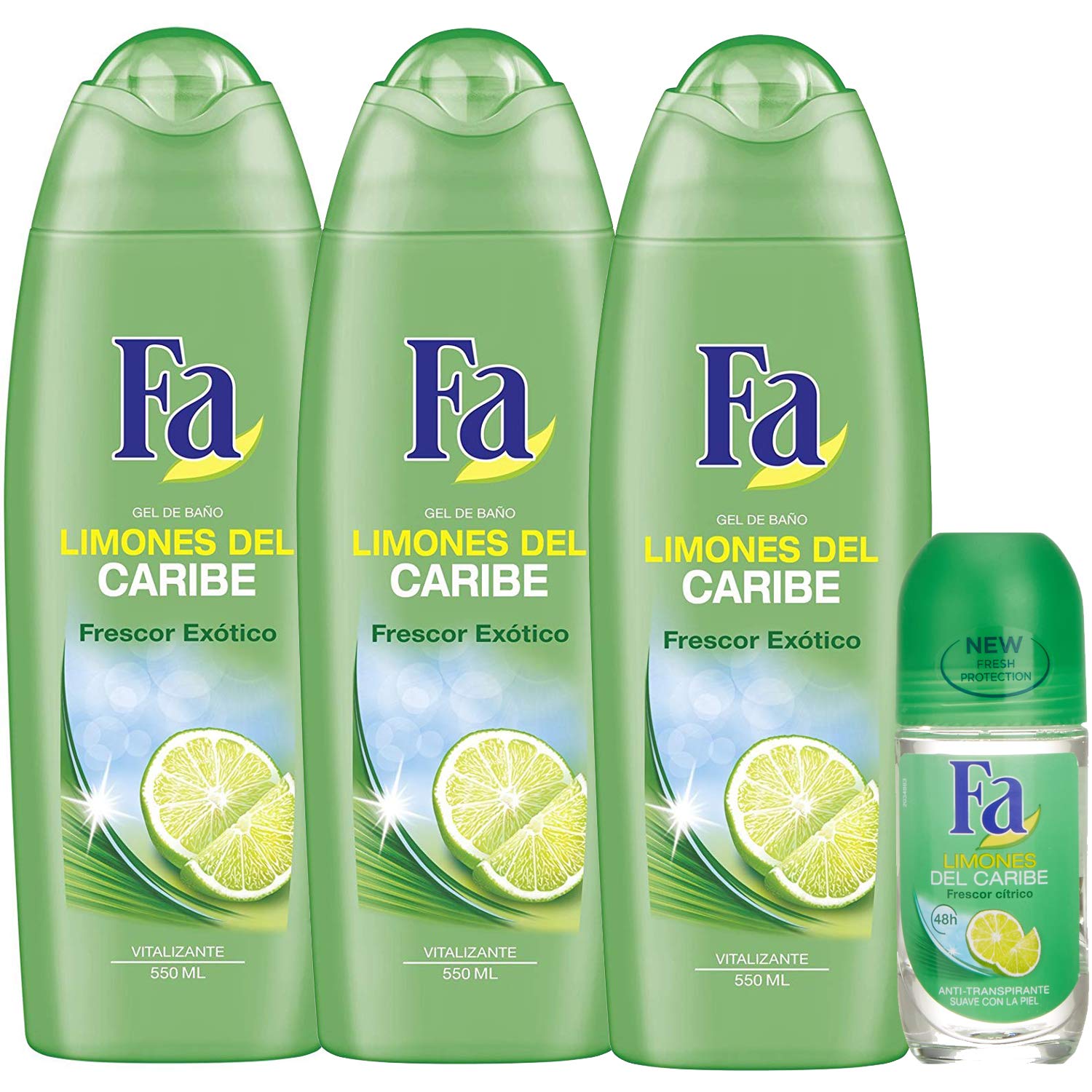 3 Fa Shower Gel Caribbean Lime 550 millileter with 1.7 Ounce Roll-on Deodorant