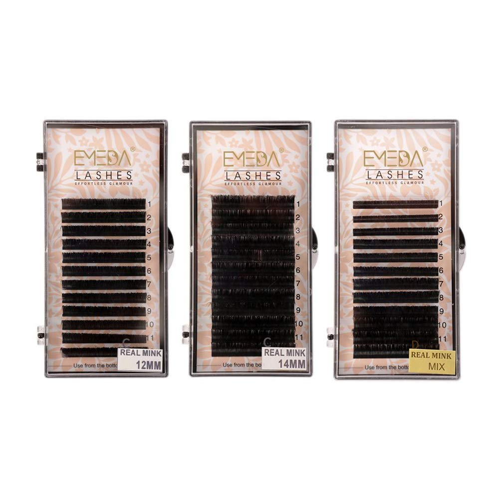 3 Packs Real Mink Lash Extensions Individual C Curl Mink Eyelash 12mm 14mm Single Length and 8-14 Mixed Length Extension Each one Pack(C Curl) by EMEDA Store