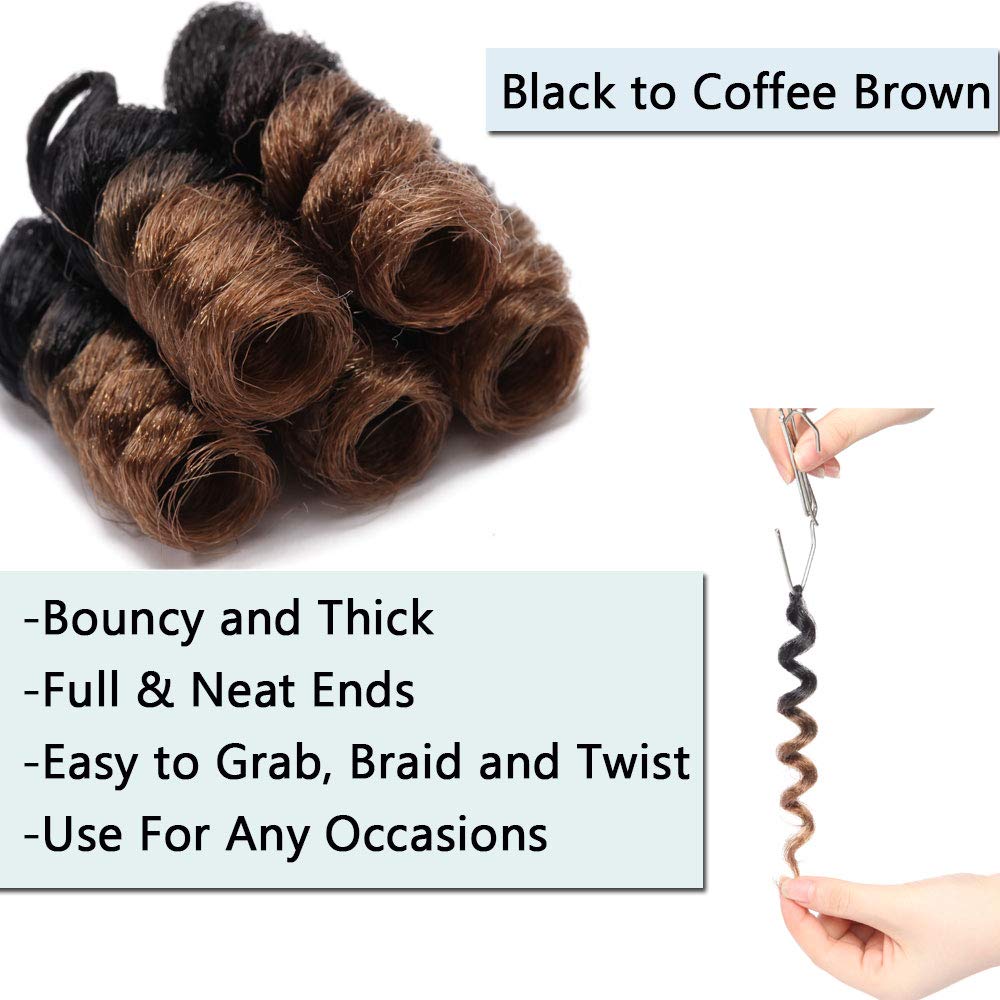 3 Packs Synthetic Jumpy Wand Curl Crochet Braids Hair Jamaican Bouncy Twist Hair 10 inch Toni Curl Crochet Hair Extensions Saniya Curly For Black Women 20 Roots/Pack(3 packs,Black to Coffee Brown)
