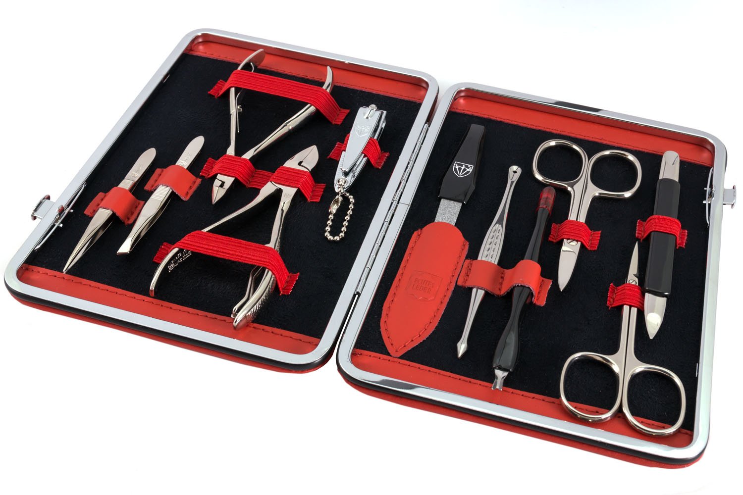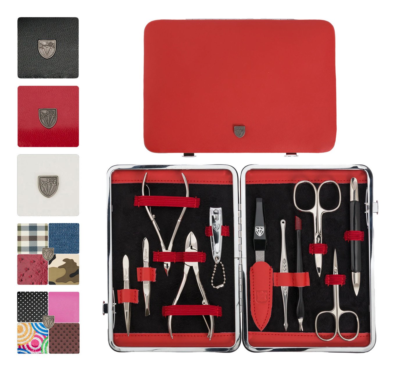 - STEEL IMPLEMENTS: Hand made, bright nickel plated (protection against corrosion), polished and hardened. All sets come in an attractive gift box. Instruments are made in Solingen / Germany (except nail clipper).