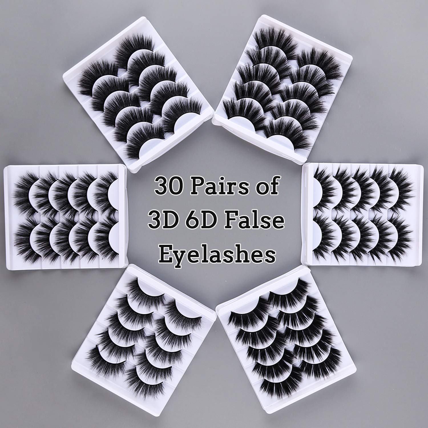 30 Pairs of 3D 6D False Eyelashes Kit Dramatic Soft Thick Handmade False Eyelashes with 6 Kinds Different Density for Women and Girls Natural Look by AROIC Store