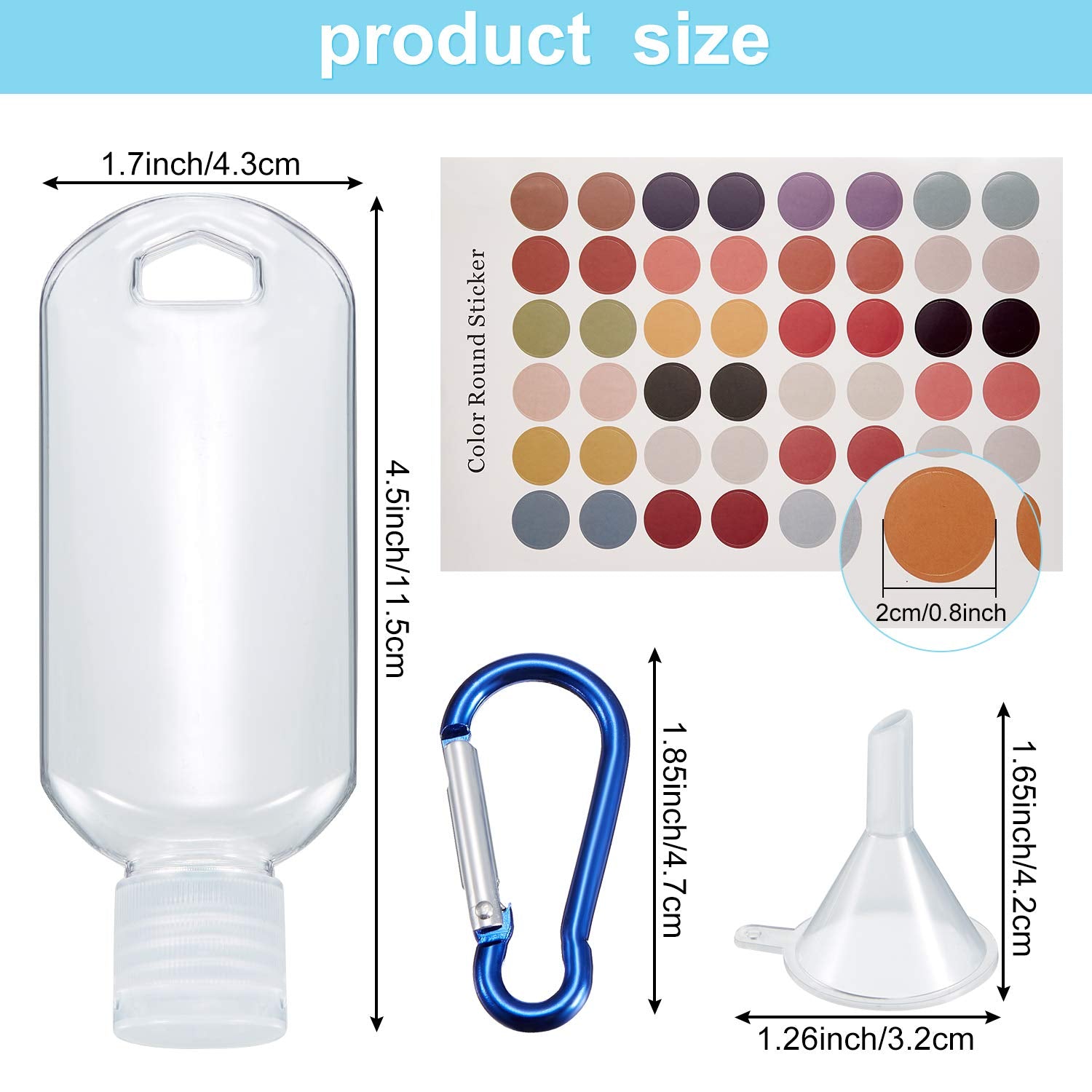 - Widely usage: the practical bottles are 50 ml/ 2 oz, refillable for cleaning, oils, toiletry, shampoo and other your DIY beauty products, when you go out, they will be your useful assistant to hold liquid or cosmetics, the stickers can help you distinguish the purpose of each bottle, and the funnels can help you change the liquid