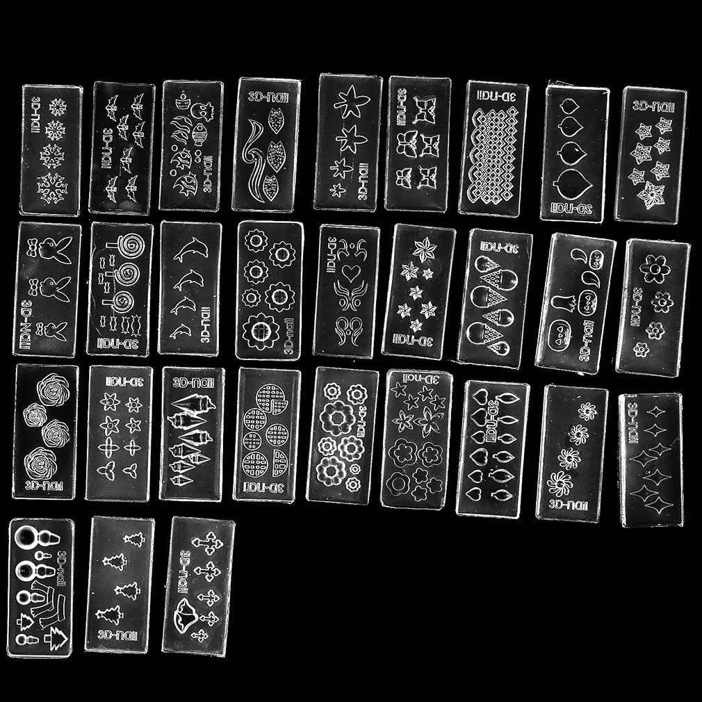 30 Style Durable 3D Acrylic Mold for Nail Art DIY Decoration Design Silicone