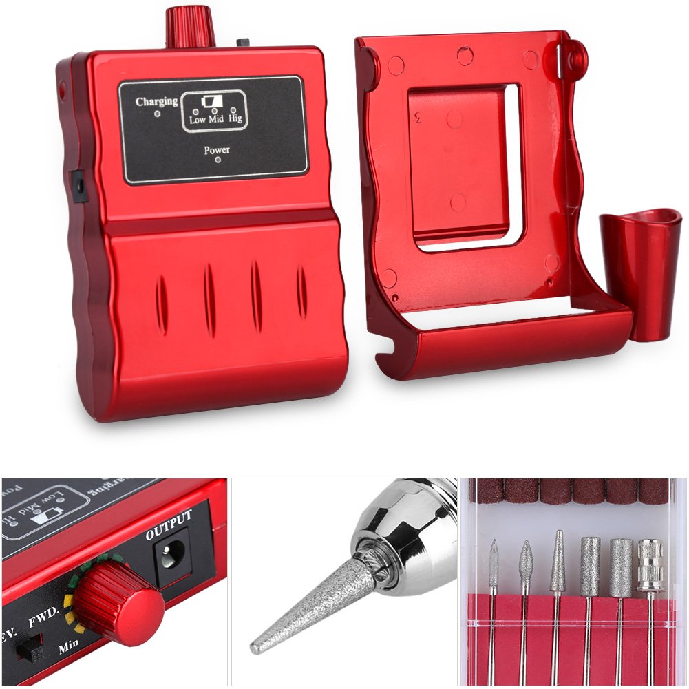30000 RPM Nail File Drill Machine, Portable Rechargeable Polishing Buffer and Smooth Nails Device Tool Set (Red) by zjchao Store