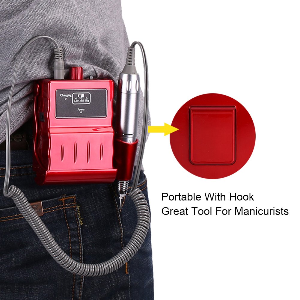 - RECHARGEABLE AND PORTABLE: Being charged for about 4 hours, the electric nail file lasts 5-hour operation time the small size, It is no need to be plugged in the outlet when it under operation, riveting design of the body case makes it easy to install and disassemble, you can hang it on your belt, waist,also can be packed into your travelling bag or case