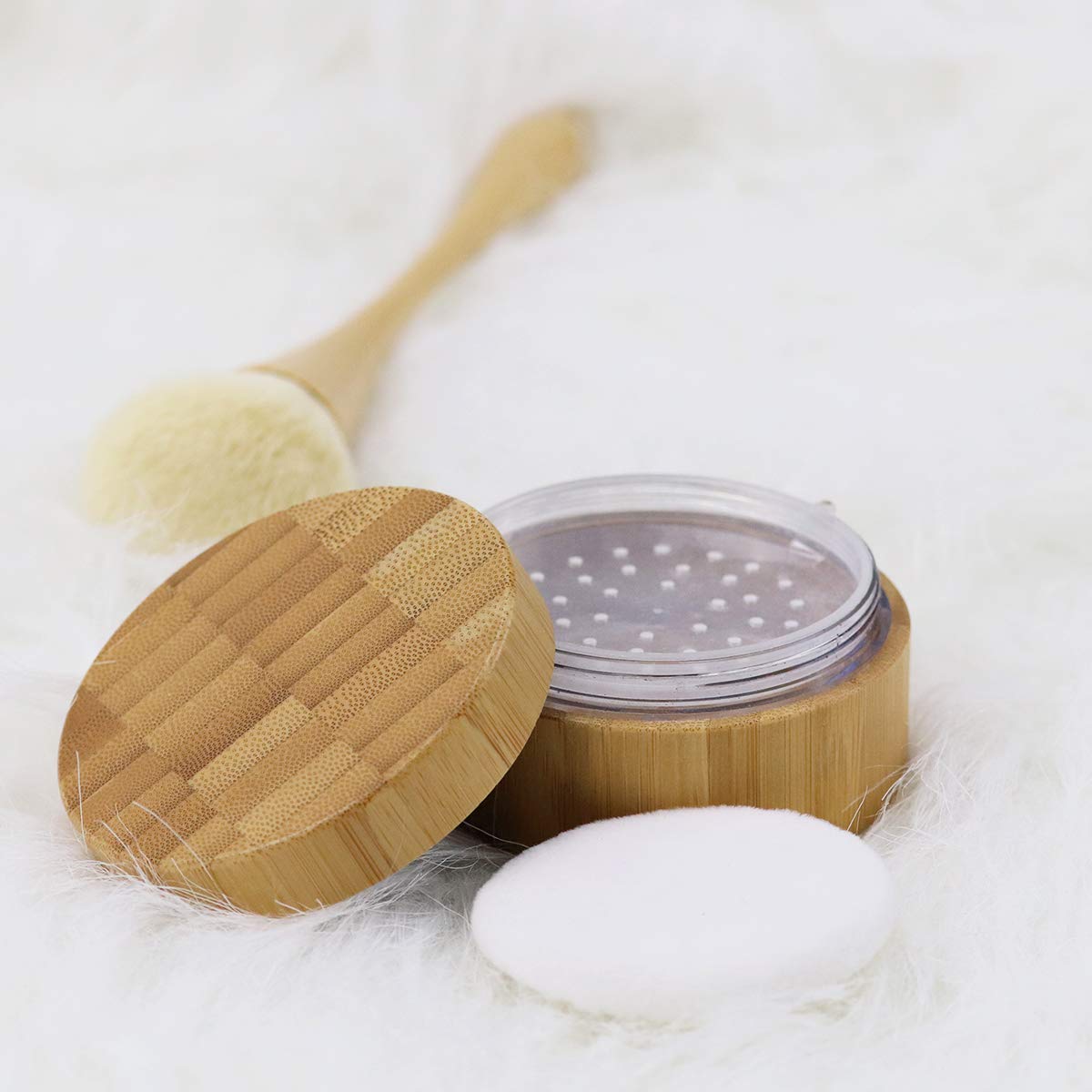 30ml/1Oz. Empty Loose Powder Container with Brush Bamboo Cosmetic Bake Make-up Loose Powder Jar with Sifter Lid and Powder Puff