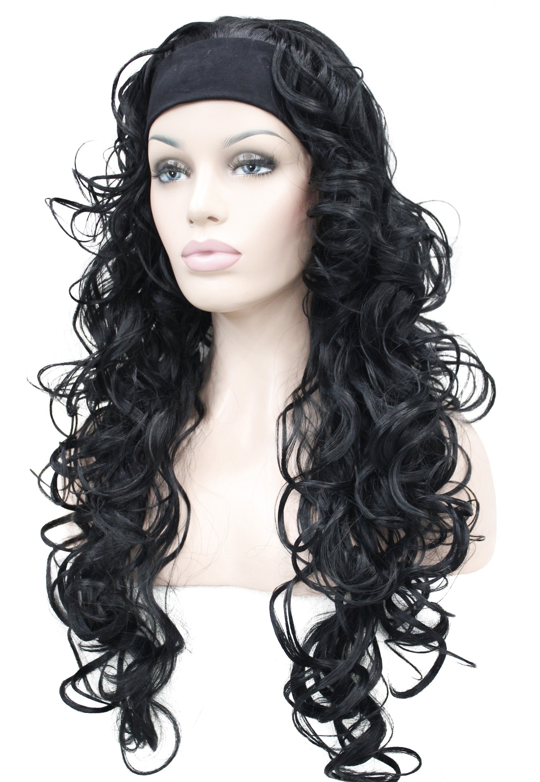 3/4 Band Headband wig Women's Dark Black Long Curly Wigs for Women ladies wigs Wiginway