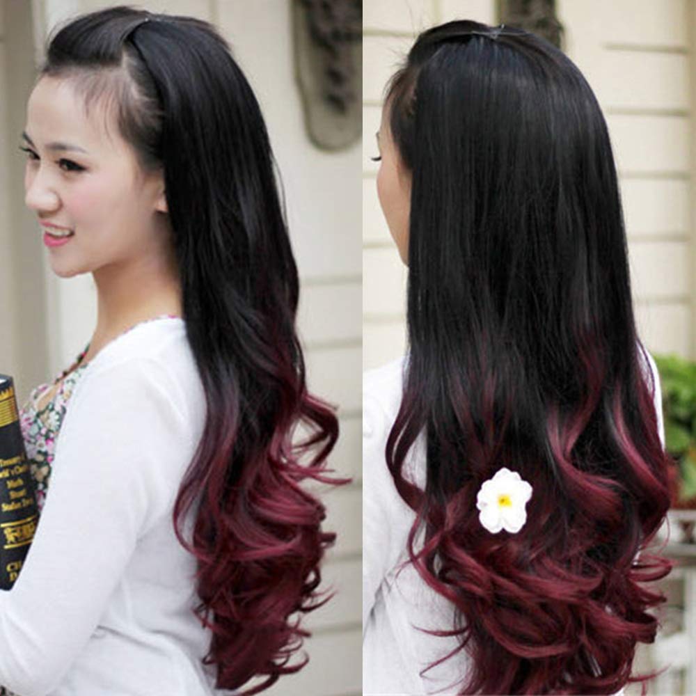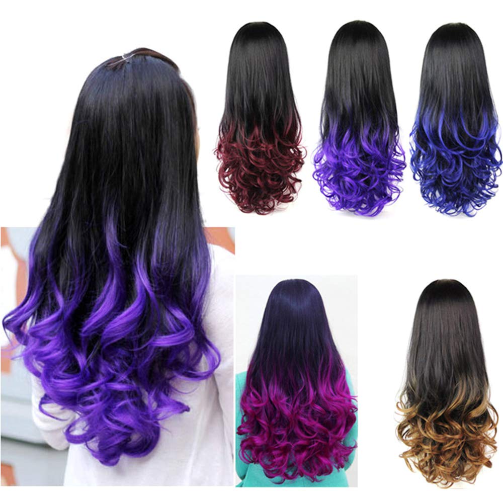 - [Feature]: Long curly wavy half wigs, full and thick, fashion ombre color, pretty shiny, add thickness and body to your natural hair.