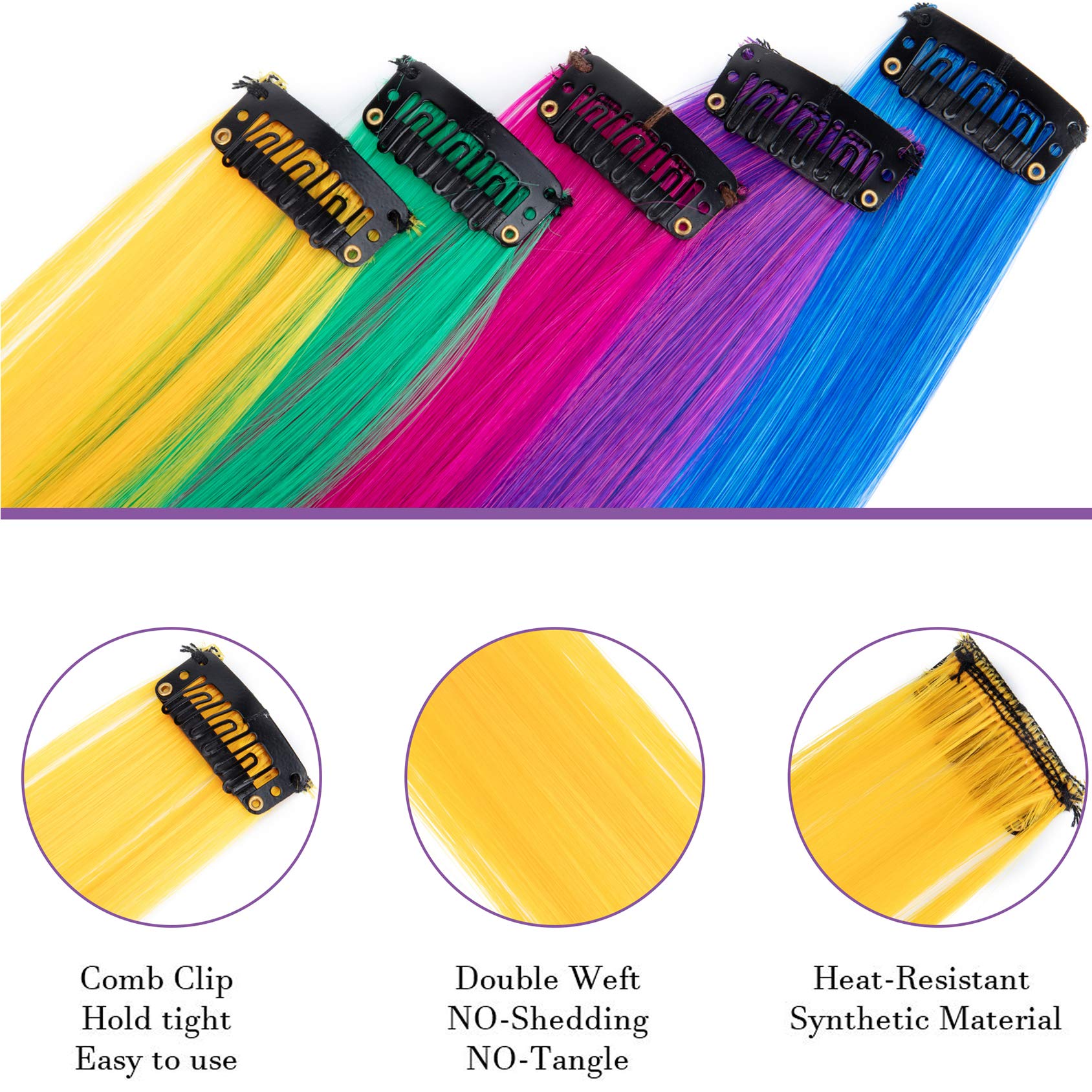 36 PCS Colored Clip in Hair Extensions 22'' Colorful Straight Rainbow Hair Extensions Clip in for Women and Kids Multi-Colors Party Highlights Streak Synthetic Hairpieces 1 Steel Comb for Free by SLLIE