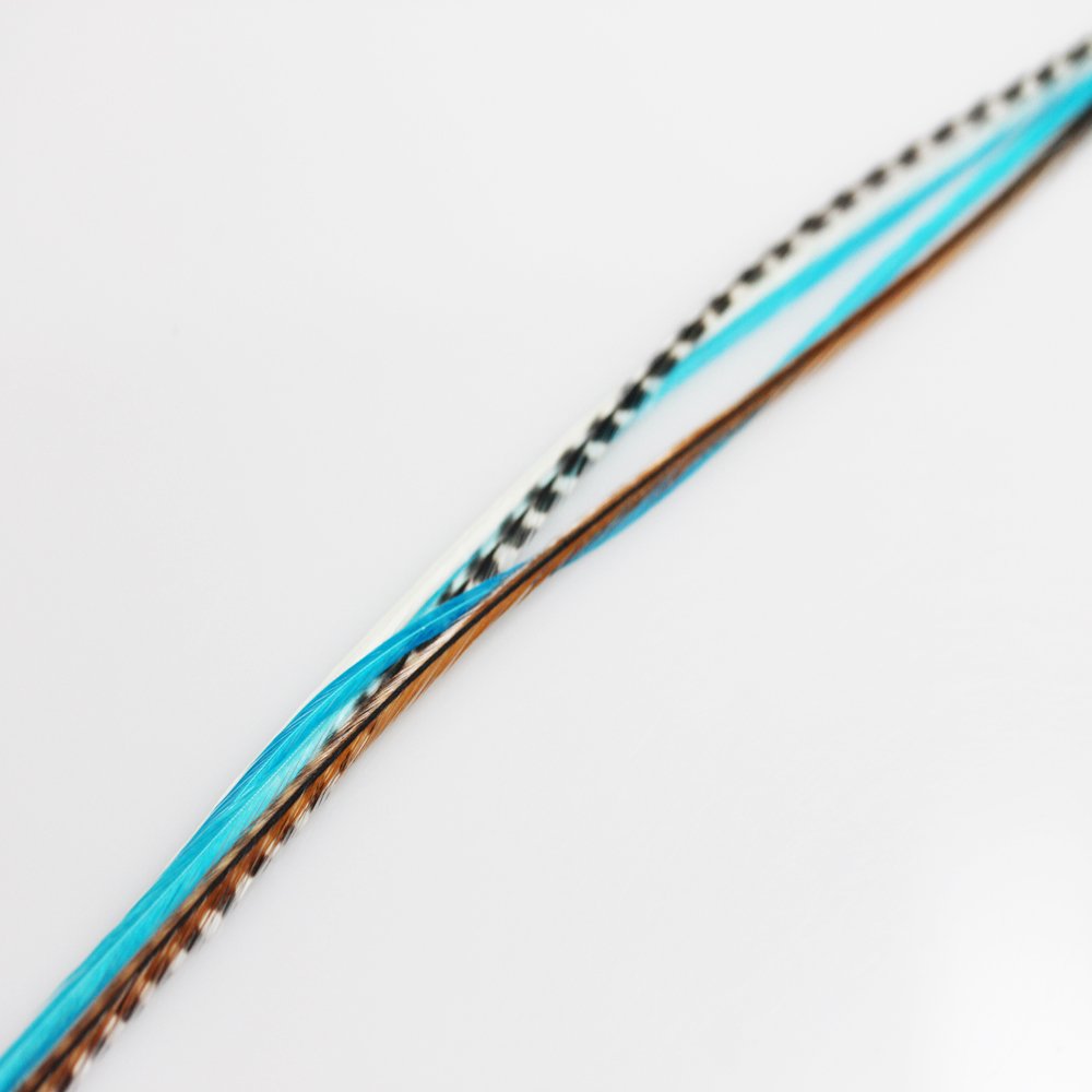 4"-6" Turquoise with Brown & Grizzly Feathers for Hair Extensions Bonded Together At the Tip Salon Quality Feathers! 5 Feathers