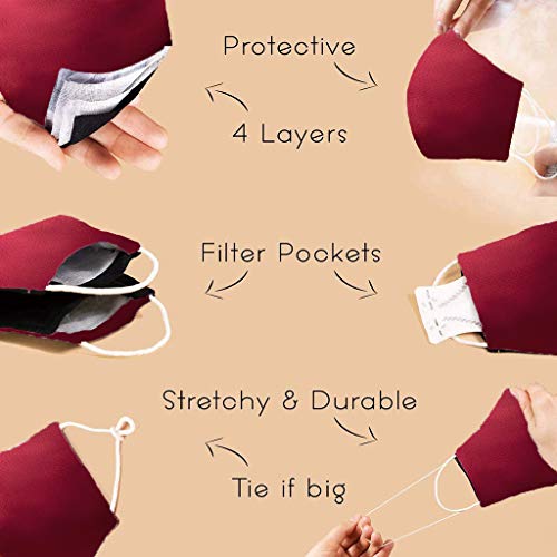 4 Layer Washable Satin Face Mask Burgundy Red with Filter Pocket Reusable Silk