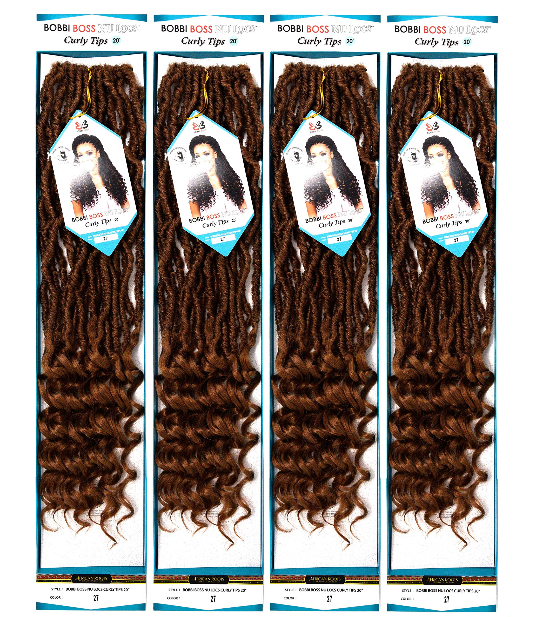 4 Pack Deal Bobbi Boss Nu Locs Curly Tips 20 Inch Color (27) 19 Strands Per Pack Hot Water Setting Premium Quality Hair Crochet Interlocking by BOBBI BOSS