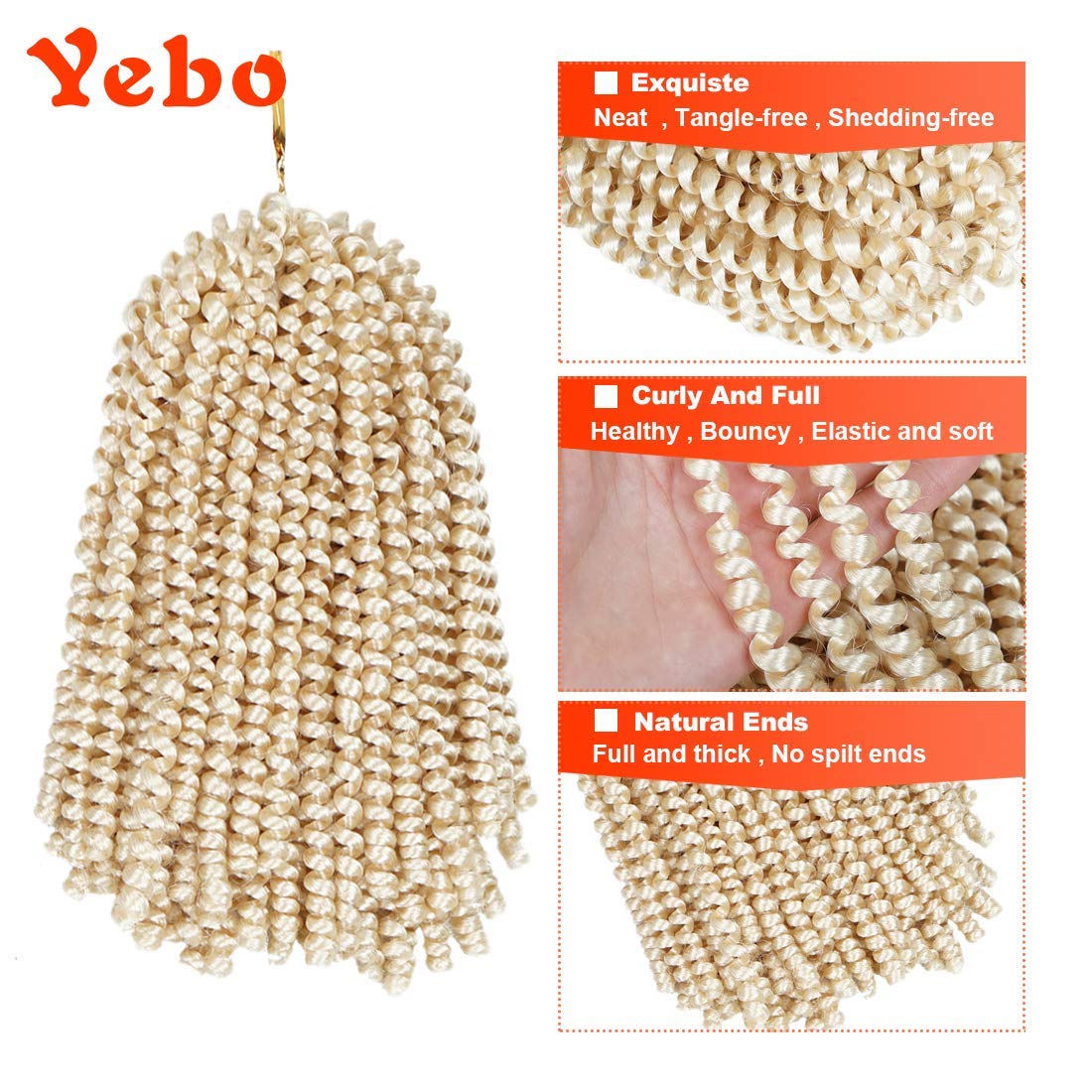 We provide the high quality product with the natural color and good texture, and spring twist crochet hair, Ease of use and not have any other smell this yebo spring twist hair is that it is solid, Have a good texture, each one is very tight, easy to install, soft and smooth, and has a lasting shape 613 spring twist hair is easy to intall, it can be used about 5-6 weeks. and we have different colors, you can according to your preferences or different occasions to select one Fashionable and stylish blonde spring twist hair looks natural, real, very pretty, Lead the trend , change the look with this hair to be the new you We suggest you wear a wig cap, Before you are going to bed. Wish you can take good care of the hair , you can use it for longer