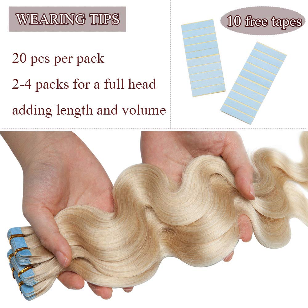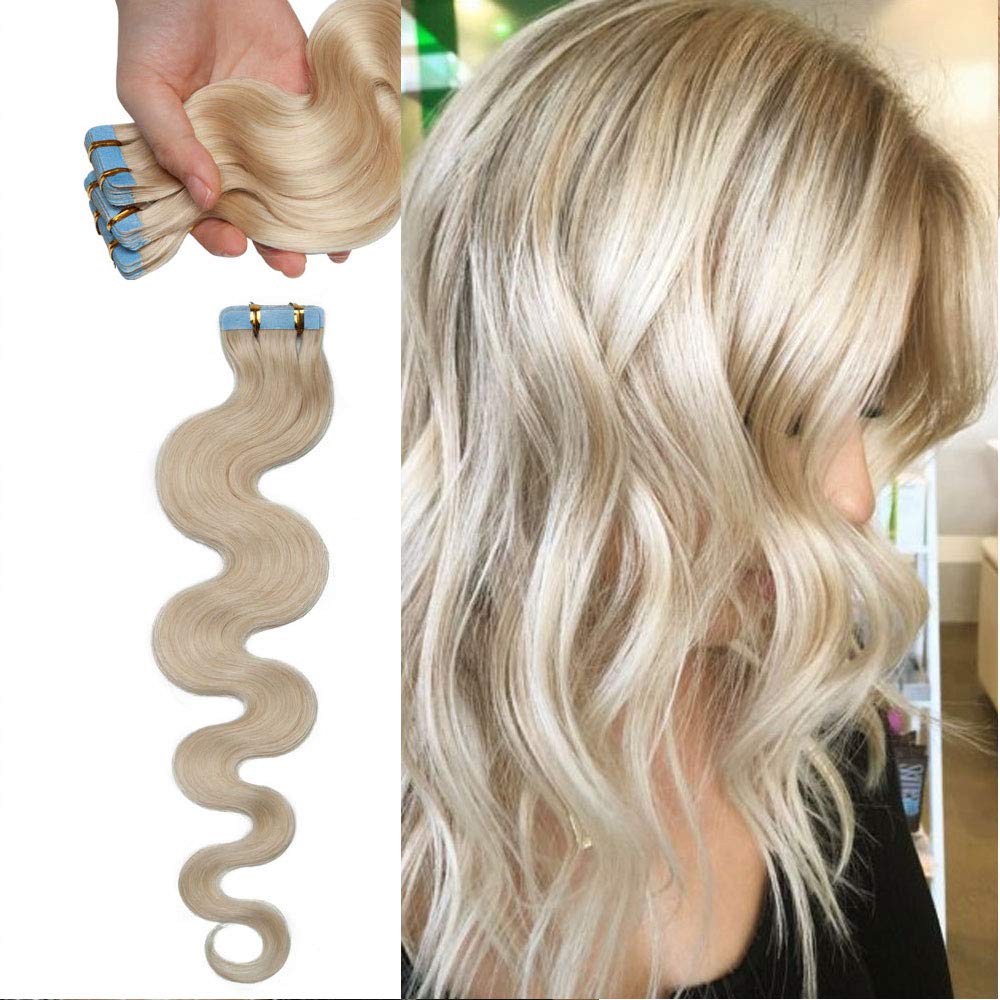 40 PCS Rooted Tape In Hair Extensions Human Hair Invisible Seamless Skin Weft Body Wave Highlight Double Side Tape Remy Human Hair Extensions Balayage Wavy For Women (20'',100g/40pcs,#70 White Blonde) by Rich Choices
